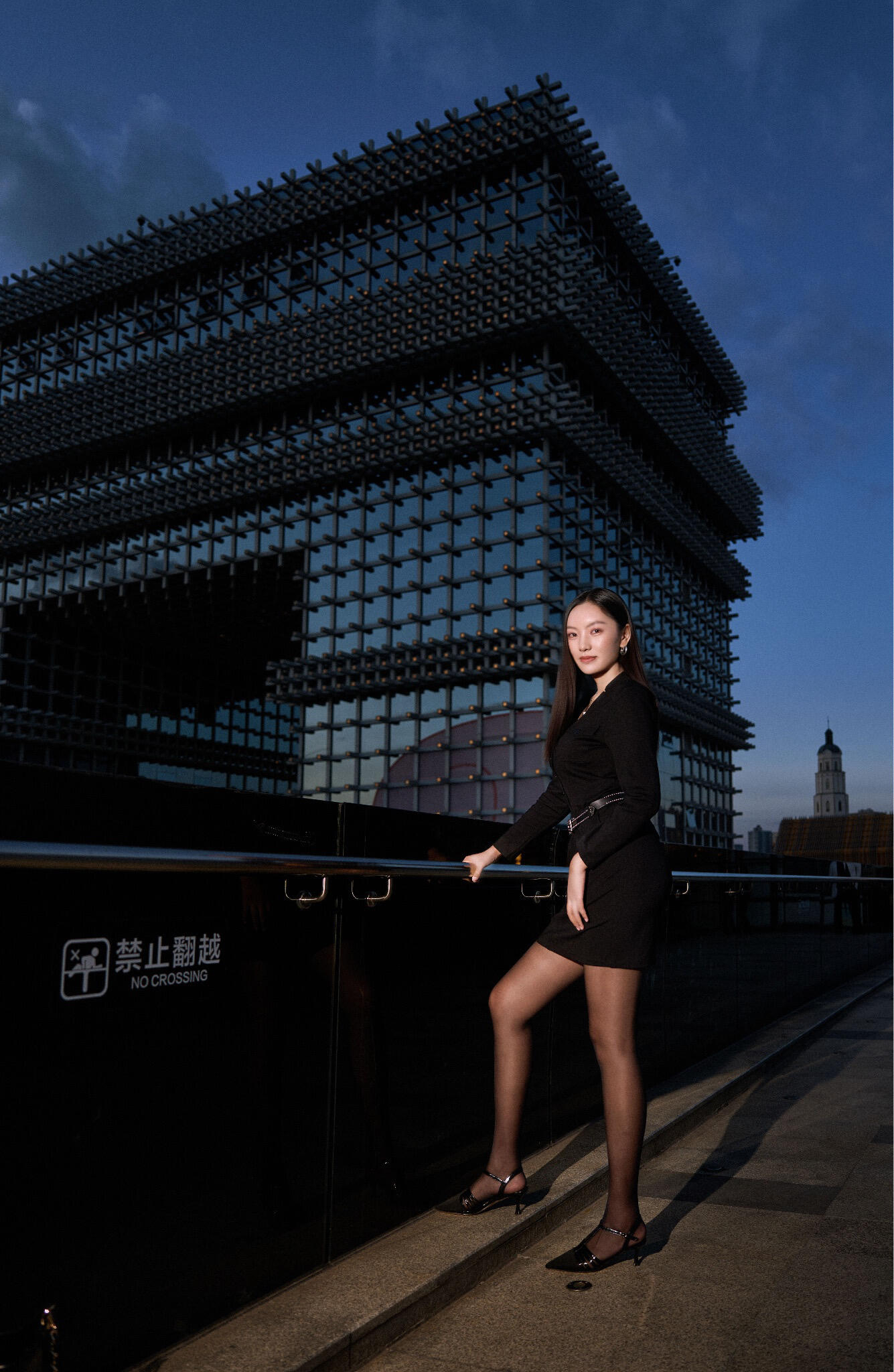 黑裙+透肤黑丝+细带高跟,性感又高级