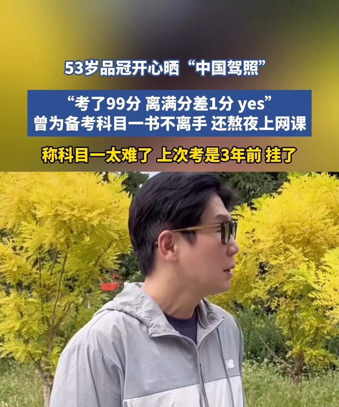 53岁品冠熬夜备考科目一?这波晒驾照也太真实了! 真没想到唱《掌心》的情歌王子品