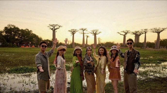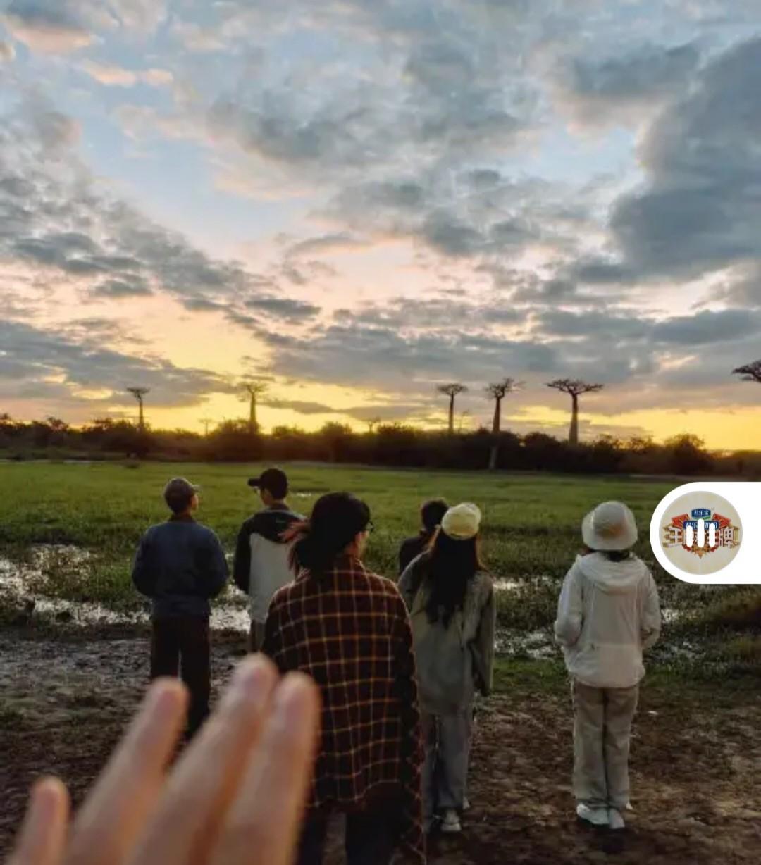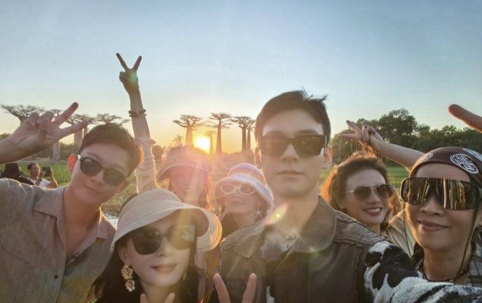 《七老童心最新同框画面治愈力满分!夕阳余晖洒在开阔草地,七人并肩眺望天际线,从绚