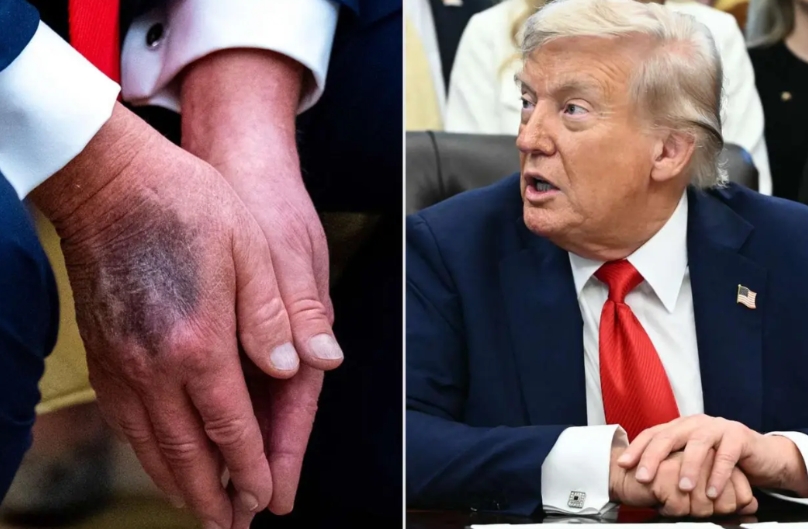根据医疗专家的分析,这很可能是由于特朗普出现了慢性心脏衰竭——对于80岁的男性来说,这并不罕见,而为了应对心衰医生开具了血液稀释剂,这造成了手部的於斑。