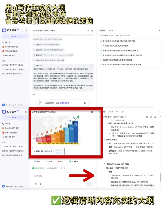 2⃣️输入指令后,AI经过详细思考过程,会直接生成ppt大纲。