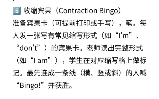 5⃣️收缩宾果(Contrac tion Bingo)