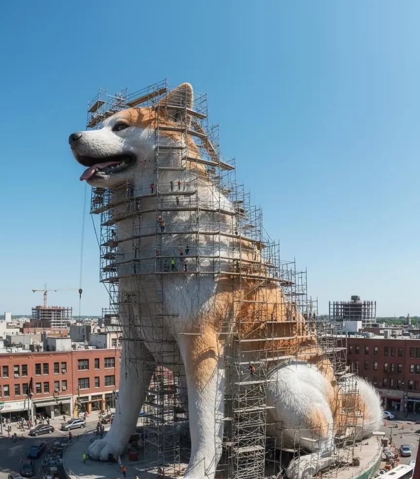 建造这种高大塑像周边肯定是大平地。外加过于细节的皮毛,可以确定是AI。