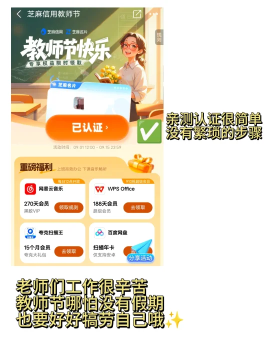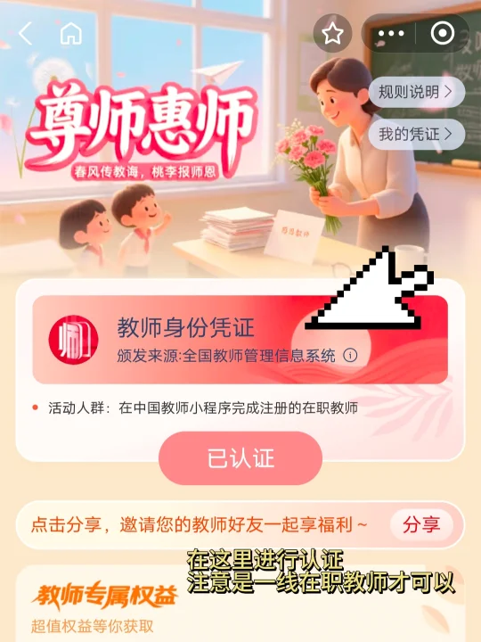 本人已验证,支付宝🔍「放学啦」「老师好」(一次🔍一个)即可,福利已领。有教资就可以,快去试试吧!老师们很辛苦,薅羊毛犒劳自己太应该啦!
