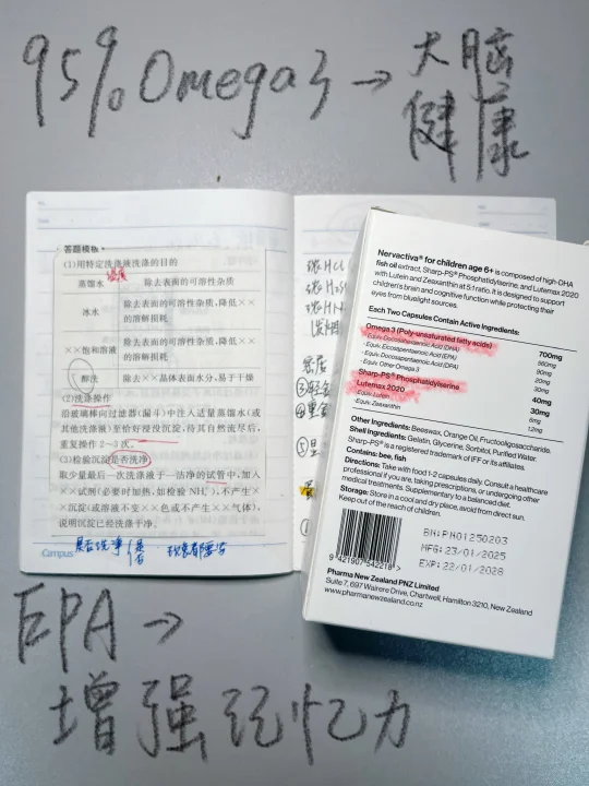 它里面含有95%高纯度Omega-3(DHA含量560mg!)➕磷脂酸丝氨酸(Sharp-PS),吃了一段时间后,专注力和记忆力真的有提升!📈
