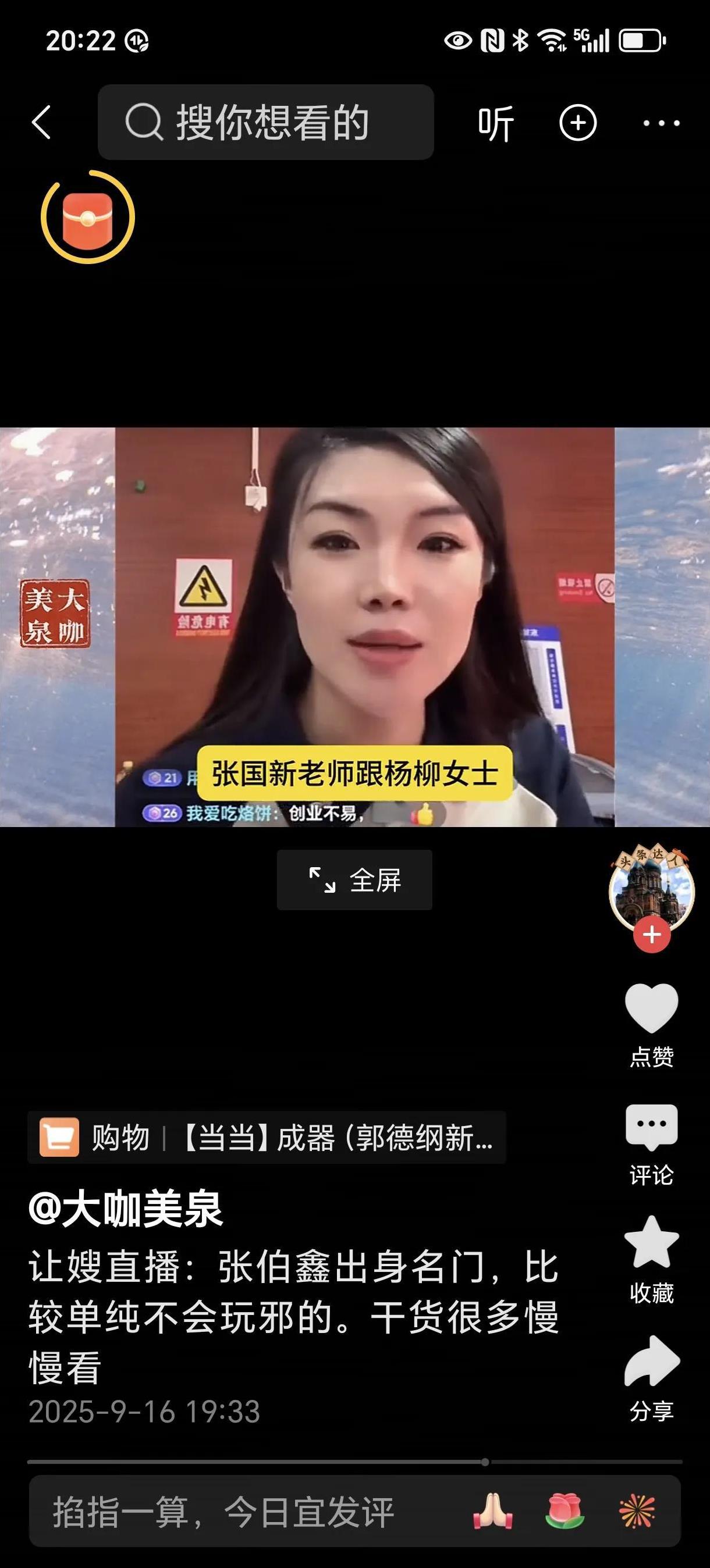 让嫂开直播还是延续着前几天的节奏。如今,他开启了新的开讲频道,说话依旧带着些酸意