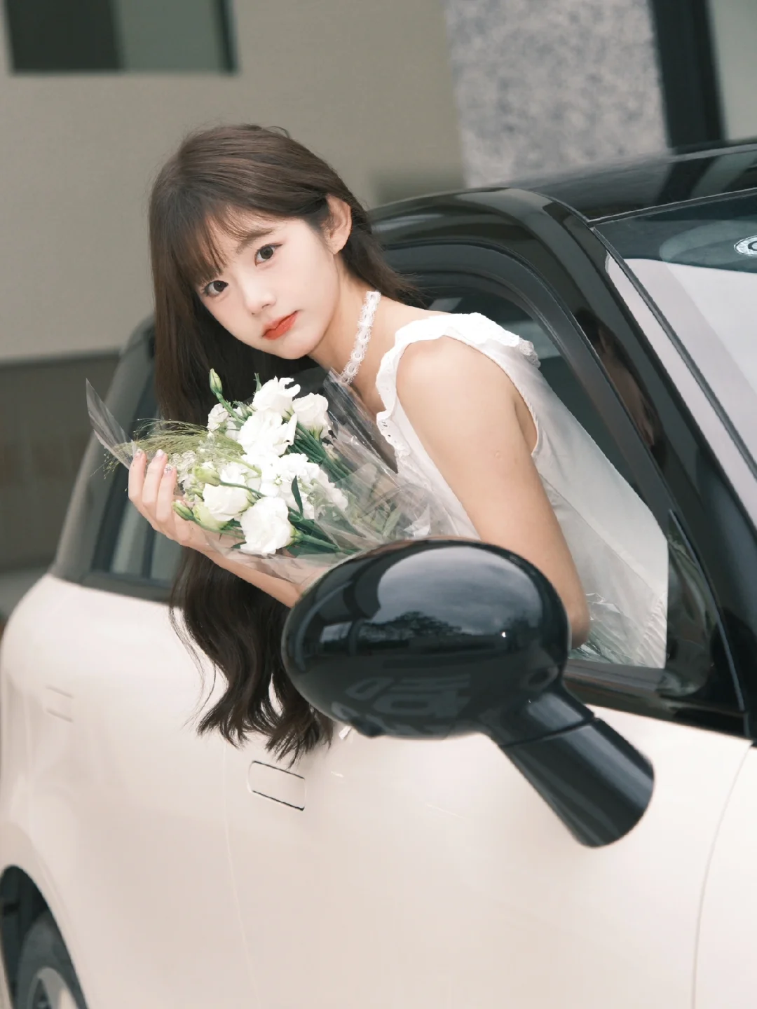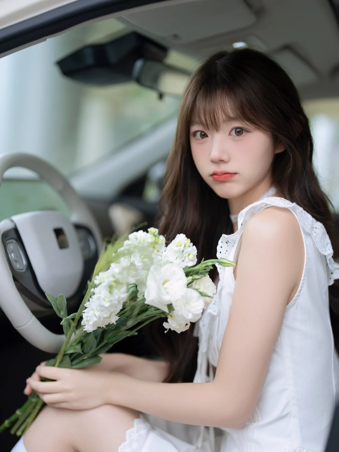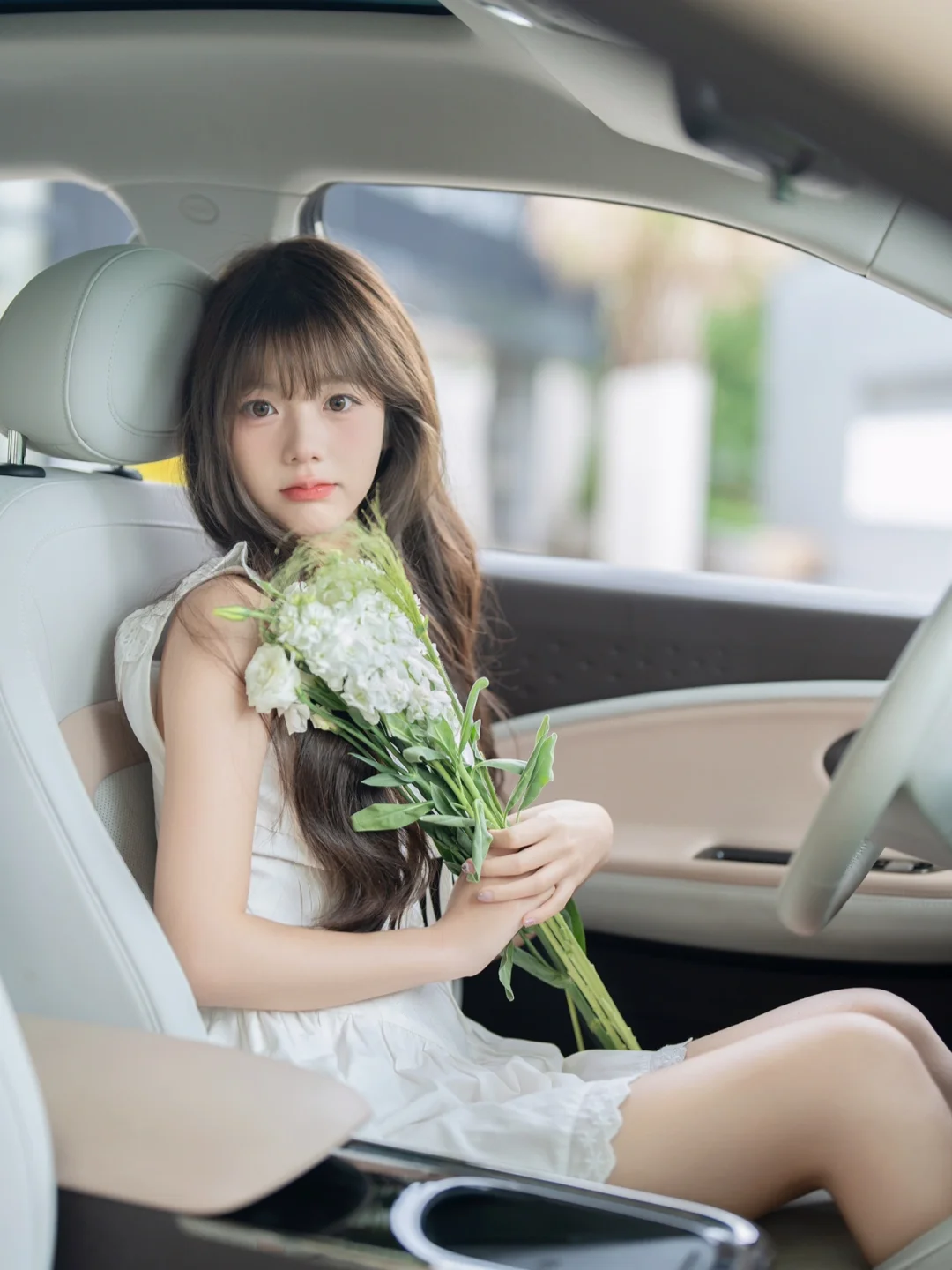 手捧鲜花就像是春天里的公主
