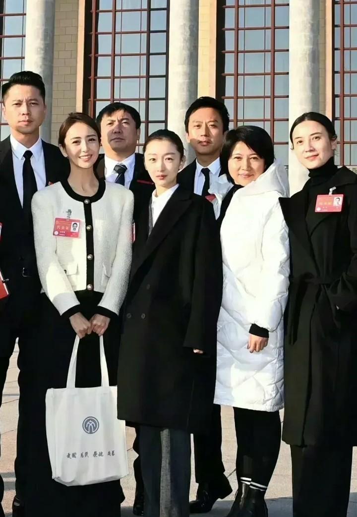 后排就认得出男演员王雷、邓超。前排有左边的佟丽娅、最右边的宋佳,一个比一个优雅,