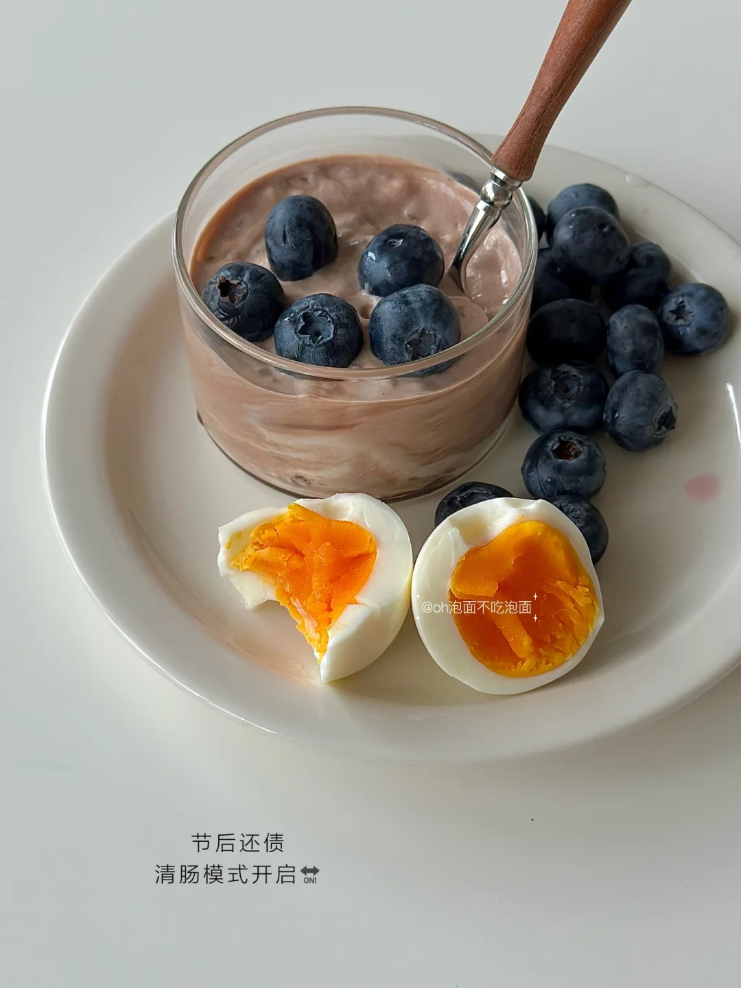 🥣 早:可可酸奶,蓝莓,鸡蛋 午:西葫芦蛋饼 晚:手枪腿,生菜 📝 今儿个早早吃完延长点空腹时间 节后清肠,还债啦