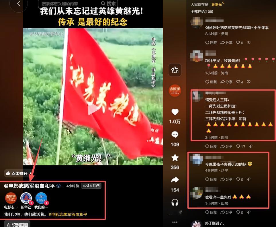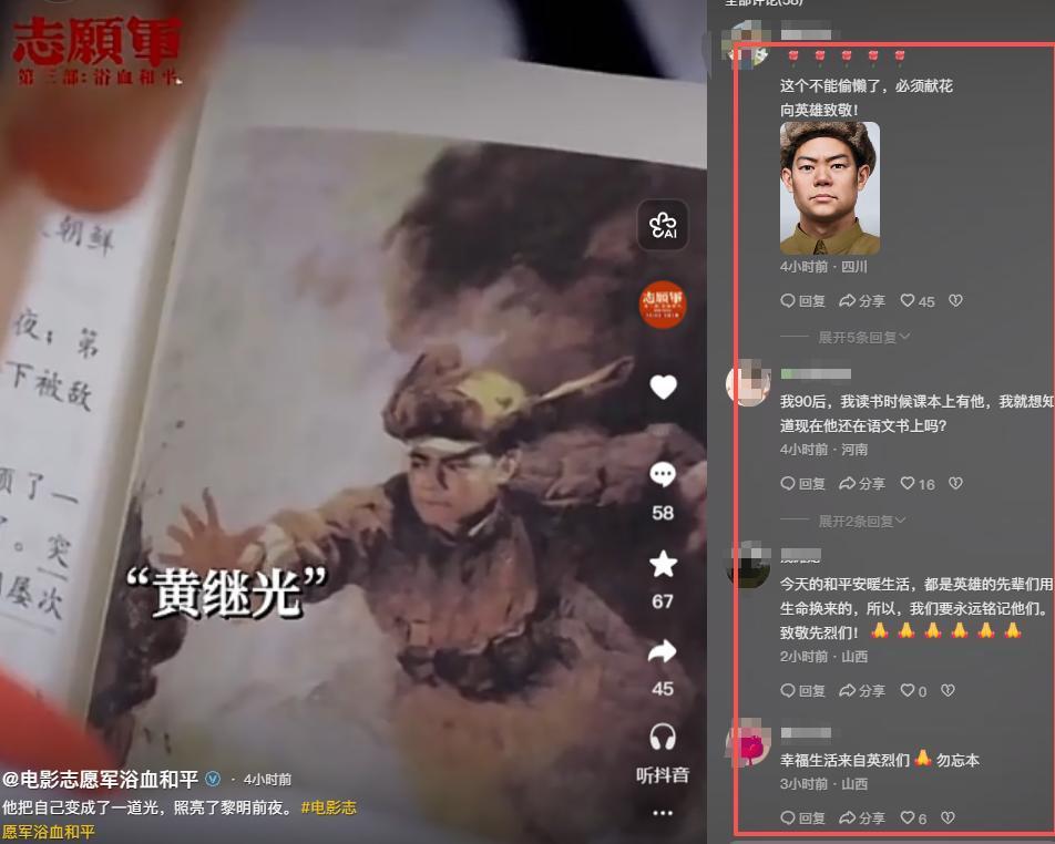 《志愿军:浴血和平》看了,还真不能说不好看。 作为终极篇的它,今天已经正式上映了,而小编也是第一时间去看了。 从内容上来说,更欣赏、更感谢陈凯歌对上甘岭的拍摄,又燃又泪崩! 不仅看到了我方战士齐心协力、勇往直前的一面,又看到了课本上抒写,用身体抗下子弹的黄继光。 文字是有感触,但直观的看了黄继光,他的身体被子弹打成“千疮百孔”的状态,这伟大的行为,更具象化了。 毕竟,作为国家权威的媒体新华社,它跟《志愿军:浴血和平》、以及课堂上的学生,合拍了一条致敬黄继光的视频。 从演技上来说,长相正气的李晨,“开炮”二字,就焊在了他的身上,很有威严感。 而女一的张子枫,拿起石头打出去、缓解失去哥哥的桥段,不仅看到了李晓翻译官该有的坚强,还有小女孩的脾气。 作为导演的陈凯歌,不仅仅把每个战士拍成了英雄。 在首映礼上,还保留了一个最佳的观影位置“19”号,送上花深深的鞠了一躬。 看似一个平平无奇的数字,但这是我方战士在朝鲜中,牺牲的19万多志愿军烈士。