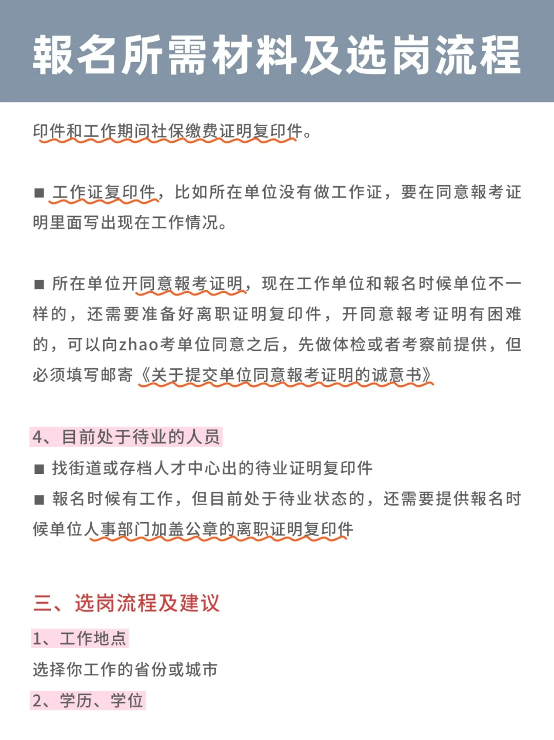 同意報 考证明、工作证明、学历学位证明、基层工作经验证明、待业证明等。