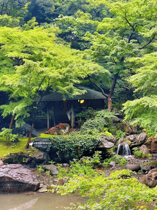 和风十足,山林葱郁,石桥🪨小亭,还有被绿色包围的平静水塘