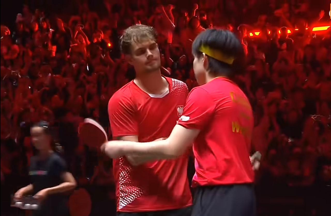 被吓出一身冷汗!好担心王楚钦会爆冷输掉比赛。今天下午我在看WTT中国大满贯32强赛,王楚钦对雷德齐姆斯基。刚开始以为这是一场很轻松的比赛,一个排名世界第一,一个排名世界第45名,应该不会太有波折的。 但万万没想到大头差点被拉下马了。 别看波兰这位排名45的雷德齐姆斯基,但是他的技术水平和比赛心态一点不占下风,反而有点初生牛犊不怕虎的味道。 而且这位斯基身高大、手臂长,很像雨果的身材,正手、反手进攻打得都很流畅。 他一度将大头逼入了绝境。 让咱们在屏幕前面为大头拈了一把汗,很担心他承受不了波兰这位19岁选手的冲击。 好在大头在决胜局开局以0:3落后的时候,王皓教练叫了暂停,止住了大头的下风之势,接着大头稳定了心态,连扳回几分,最后终于以大比分3:2赢得了胜利。 终于让咱们松了一口气。 在北京的WTT比赛,还是希望大头能拿冠军的! 但雷德齐妞斯基今天虽然失败了,但他才19岁,未来不可限量的。 祝贺大头进入下一轮!加油!争取拿冠军🏆!!