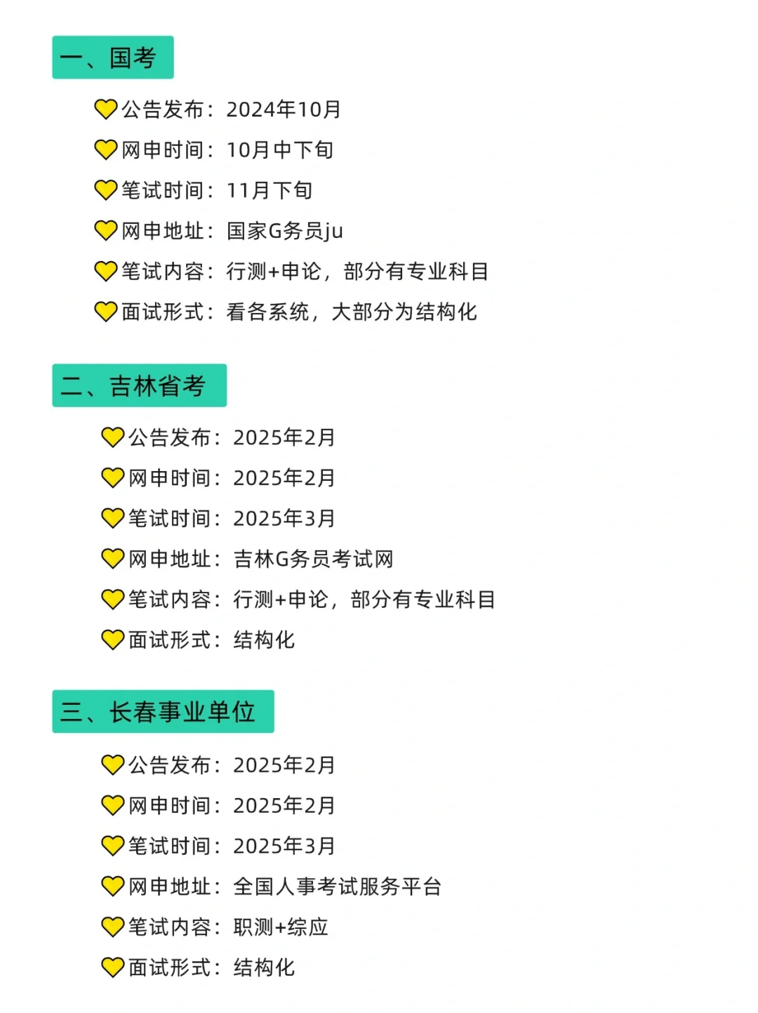 2⃣️吉林省考:2025年2月网申,3月下旬笔试