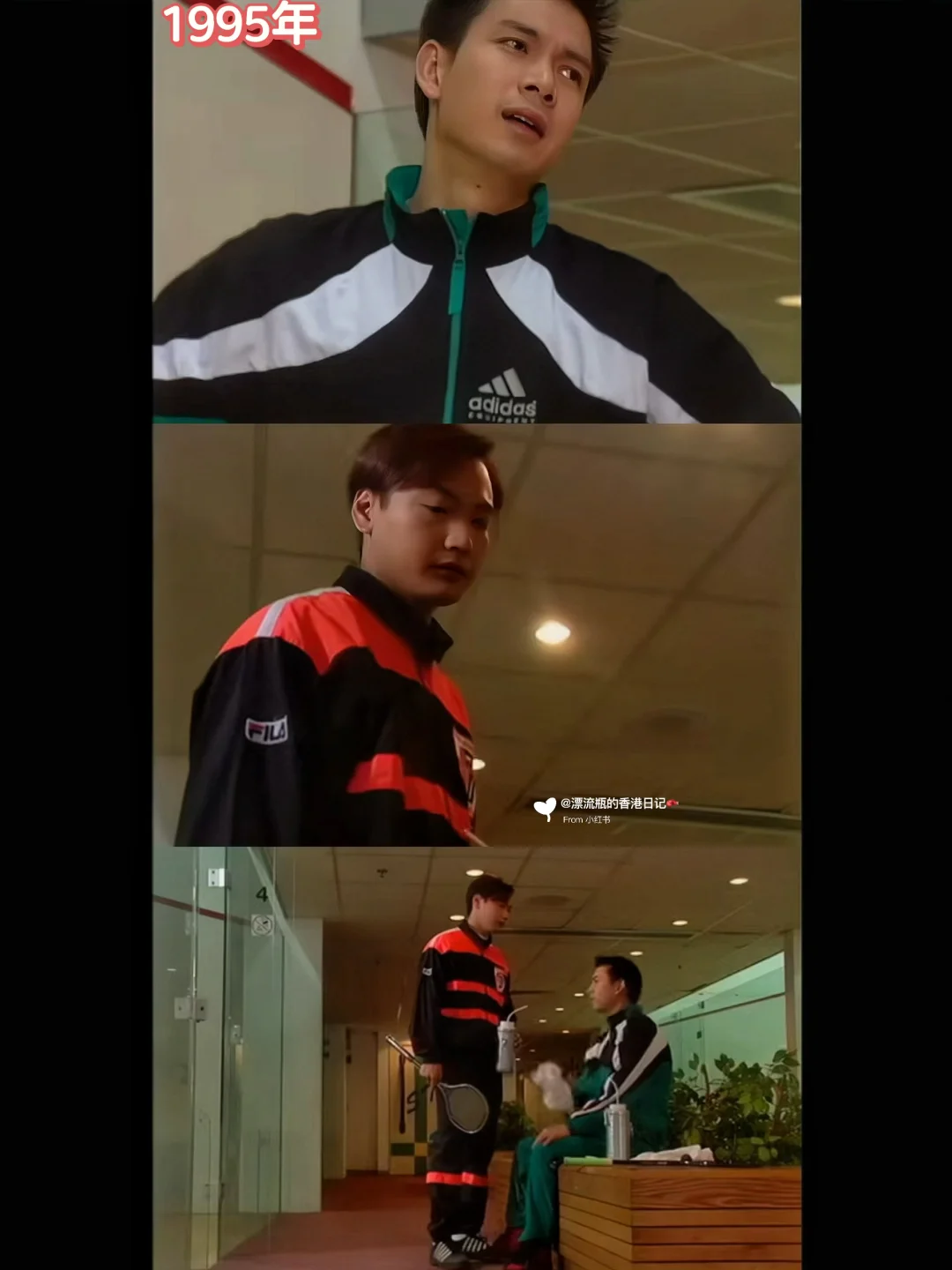 图2:大勇忠义一起打壁球⚾️大勇穿的FILA运动服,忠义穿的Adidas运动服