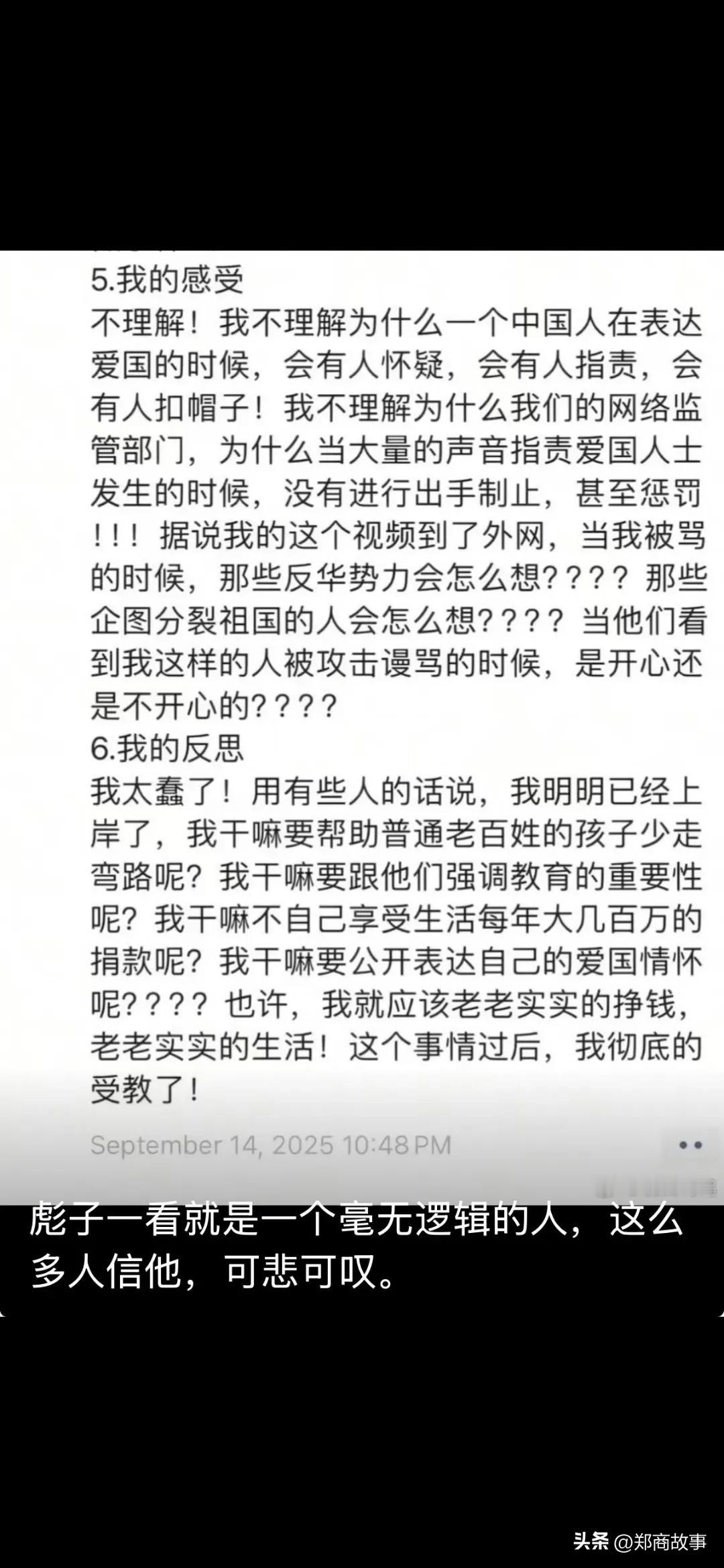 看到张雪峰在朋友圈发的长篇大论的卖惨、表忠、吐槽。 我和一个朋友讨论了好久张雪峰被限流的原因。 我认为是他业务的模式,是一种利用信息差焦虑的恐吓性营销。 他在朋友圈说了那么多,其实是在他逻辑上为自己洗白。 但是他此时的逻辑其实是有点混乱的,或者说他现在真的被吓懵圈了,还没找到出路。 其实他提供的服务本身是一个懒人经济和心理安慰剂。 张老师机构提供的咨询服务其实很早以前就有,一般家长只要有一定的耐心搜索研究资料,完全可以起到比咨询更好的效果。他们的成功案例很多也是建立在家庭经济能力和人脉关系基础上的,本身提供的是一个中介服务。 以前社会上有些跑学贩子,其实就是这个行业的前身,甚至效果更好更良心一点。但是他们的身份和操作思路是见不得光的。 张老师上了综艺后取得流量的同时,竟然抓住了直播的风口,用行业泄密的方式开创了自己的赛道。 不管怎样,他的企业经过了一个高速发展的时期,直到他把行业蛋糕和以前上下游利益链条的份额吃掉大半之后,大有在这个隐秘行业成为独角兽之时,戛然而止。 我想张老师应该也会很清楚,赚钱要快要趁早,这个行业只要有利益,有巨大的需求,他就会长期存在,但是他需要保持隐秘性,维持信息差,这个行业不允许有泄密者和一家独大,一家独大就是一荣俱荣一损俱损,对于上游资源来风险太大,甚至丧失了定价权,他们不愿意这么干。 这才是问题的核心,张老师站什么立场,宣什么内容,都是他长期搞流量的惯性,他业务的形式才是他被迫暂停的核心。 这个行业里面有巨大的吸金能力,而且需求稳定,定价权集中,憨厚老实的张老师即使离场,市场洗牌后也会更加趋向于上游可控的方向发展。 张雪峰能不能出来不知道,但他确实是个开宗立派的邪修大师。 谈不上多高尚和伟大,也谈不上任何不好。