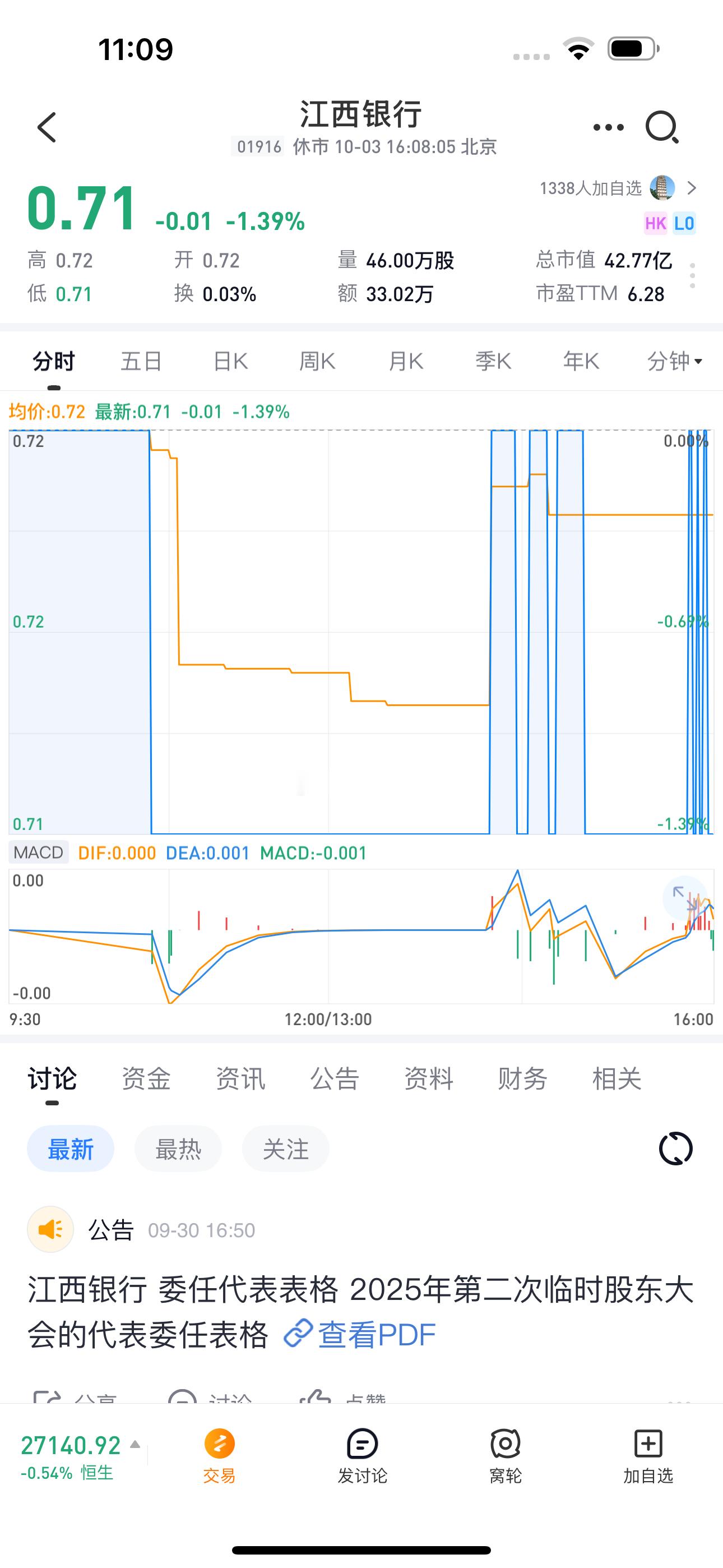 港股银行股快成仙股了!哈尔滨银行现价0.430港元,成交125.5万港元,换手率0.10%;渤海银行现价1.030港元,成交151.9万港元,换手率0.02%;贵州银行现价1.090港元,成交5.7万港元,换手率0,江西银行现价0.710港元,成交33万港元,换手率0.03%;而像九江银行、威海银行更是一天0成交。