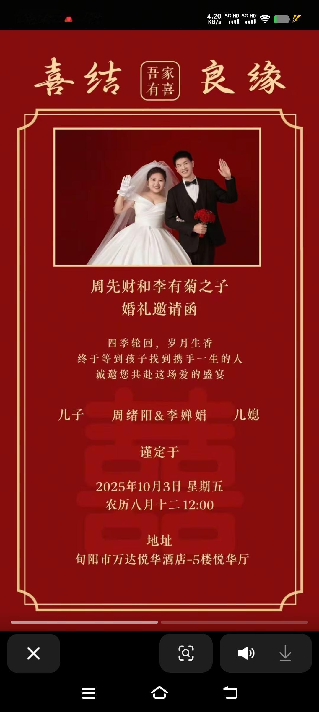 高中同学,七年感情,男的高大帅气,女的体态丰腴,一高一矮,一胖一瘦。你可以说他们不般配,但爱情就这么奇妙,爱一个人从来不需要理由。 男子极少发朋友圈,但每一条朋友圈都是关于女友的。22岁元旦那天,他发了条朋友圈“有她在身边真好,下一年还要一起走”。订婚那天发了条朋友圈“以后人生空白的那一片,就交给她了”。筹备婚礼时发的朋友圈,图片有送给女友的玫瑰花,还有一桌子她爱吃的菜,并配有文字“跟她在一起每天都很开心”。 2023年10月26号订婚,2025年10月3号结婚,历经两年时间,也许男子是想再攒上两年钱,把婚礼办的更体面一点儿。然而婚礼当天出现了所有人意想不到的一幕,你可以说他傻,他谁也了解此时他的内心世界。如果今生做不了你的唯一,就让我在来生的路口等你,或许他太爱她了。