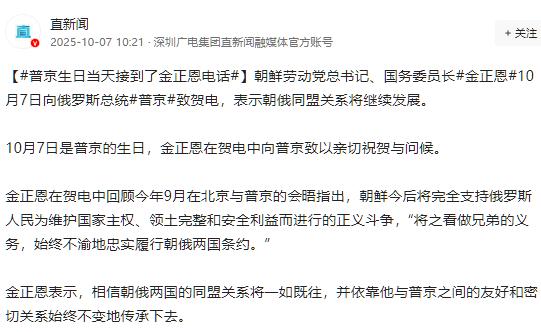 10月7日是普京的生日,金正恩发来的贺电可不是简单的客套问候,字里行间全是