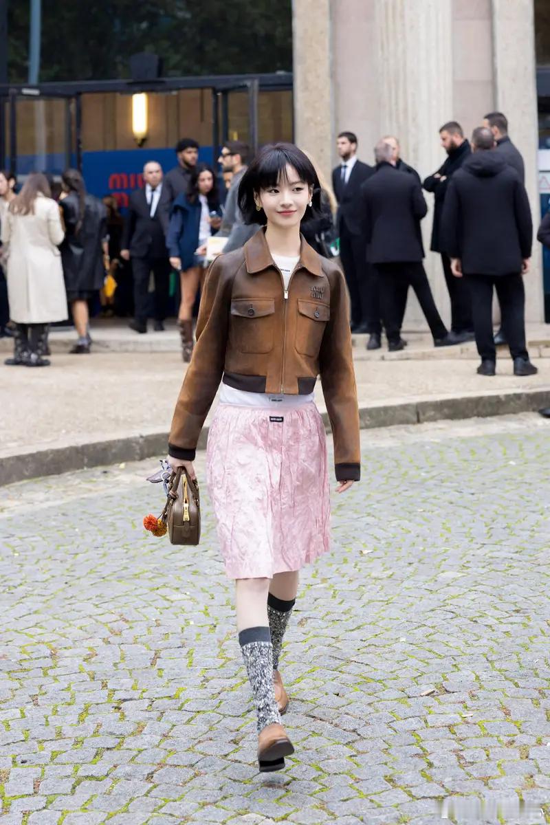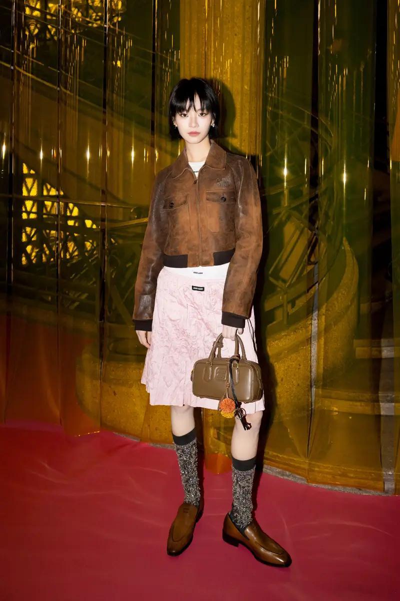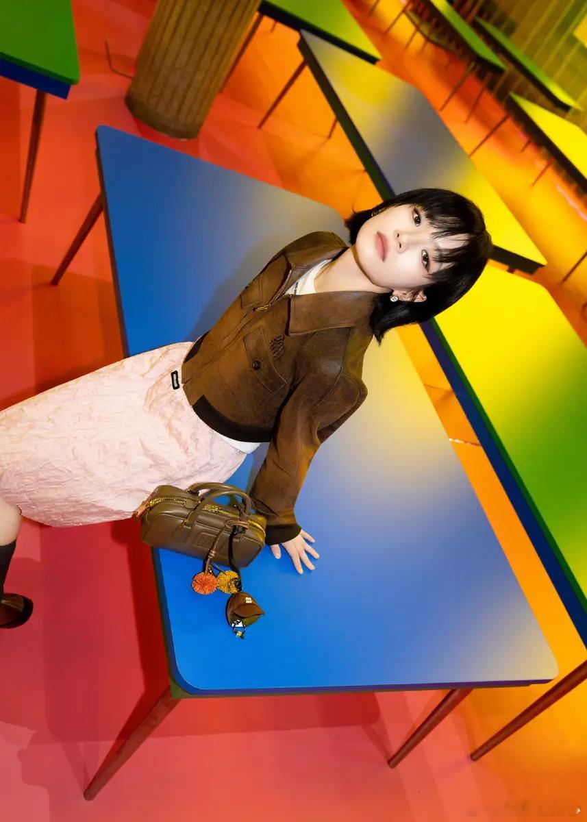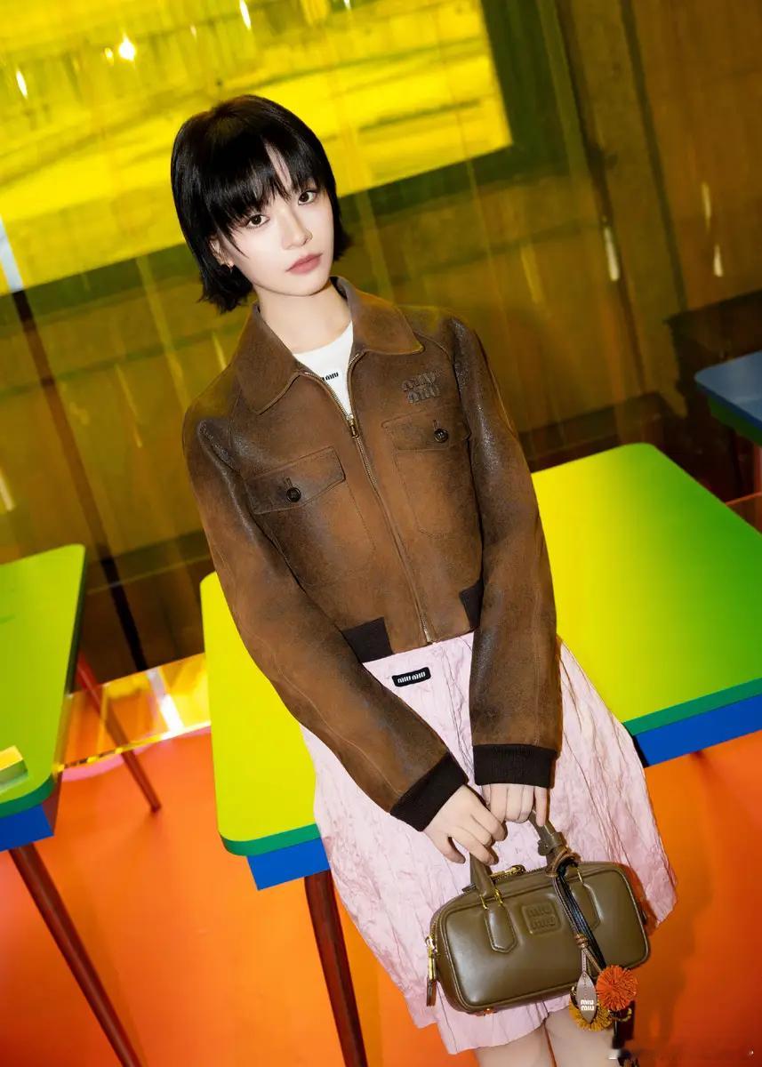 李庚希穿棕色夹克简约随性 一头短发俏皮又少女