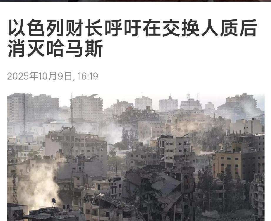 看见了吧,停火并且交换人质之后,可能就是哈马斯覆灭之时。 以财长表示:“在被绑架