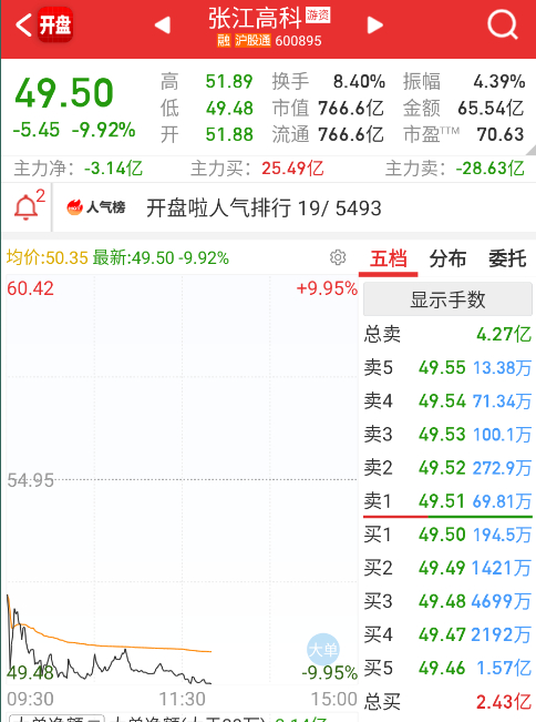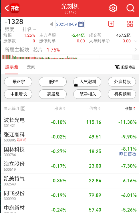 张江高科都往地板去了,国庆没献出礼,全是兑现,影响拖累整个国产链。