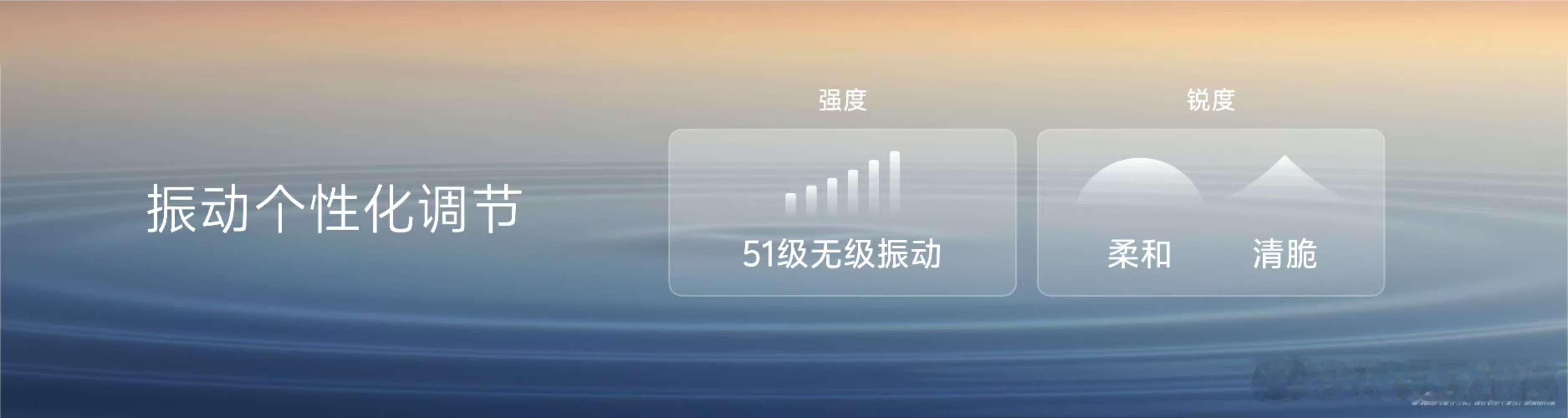 以前振动设置只有高、中、低三级,现在vivo提升到51级「无级振动」,你可以找到自己喜欢的振动强度。在振动锐度方面,增加了“柔和/清脆”触感选项,振动反馈的覆盖场景也更全面了。