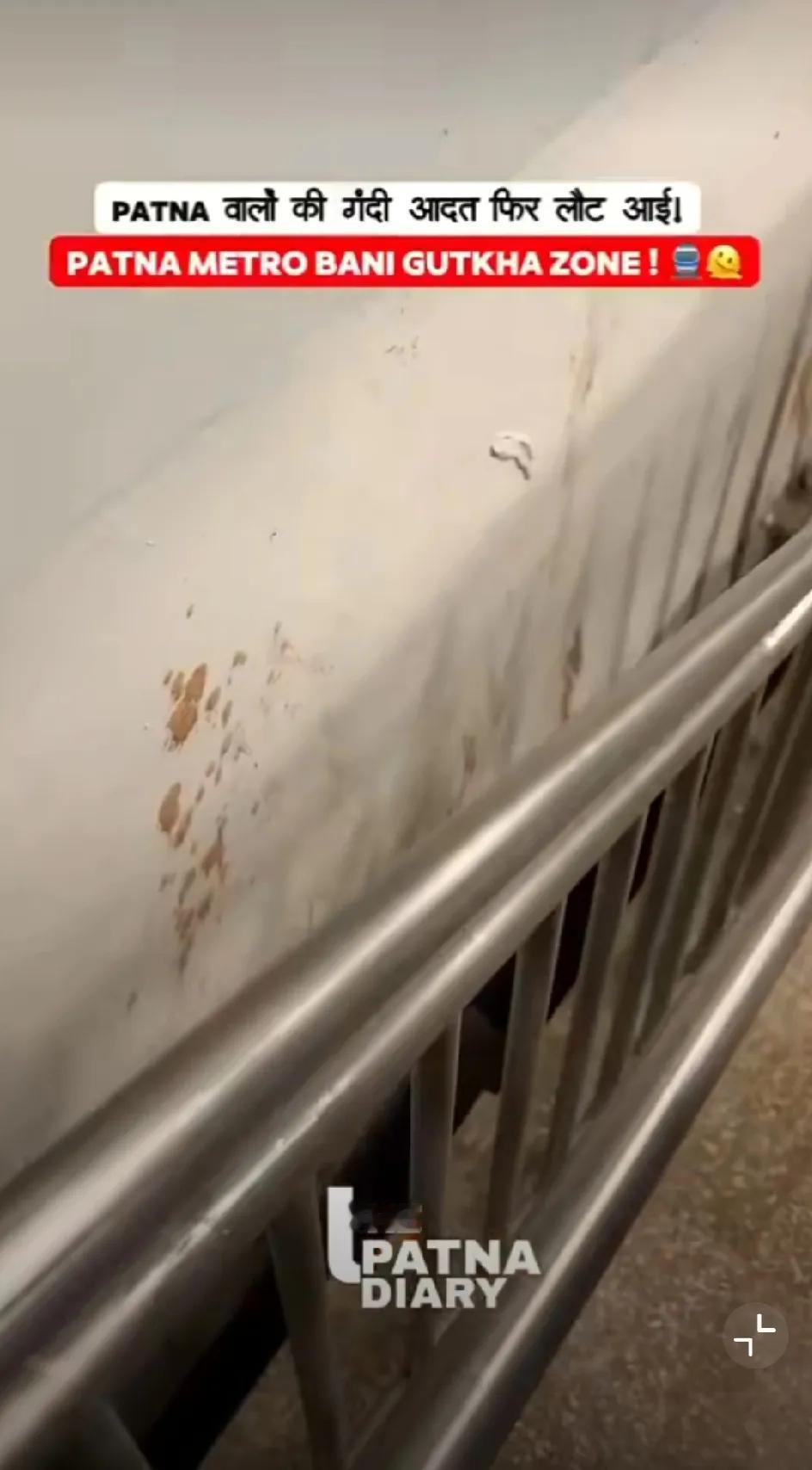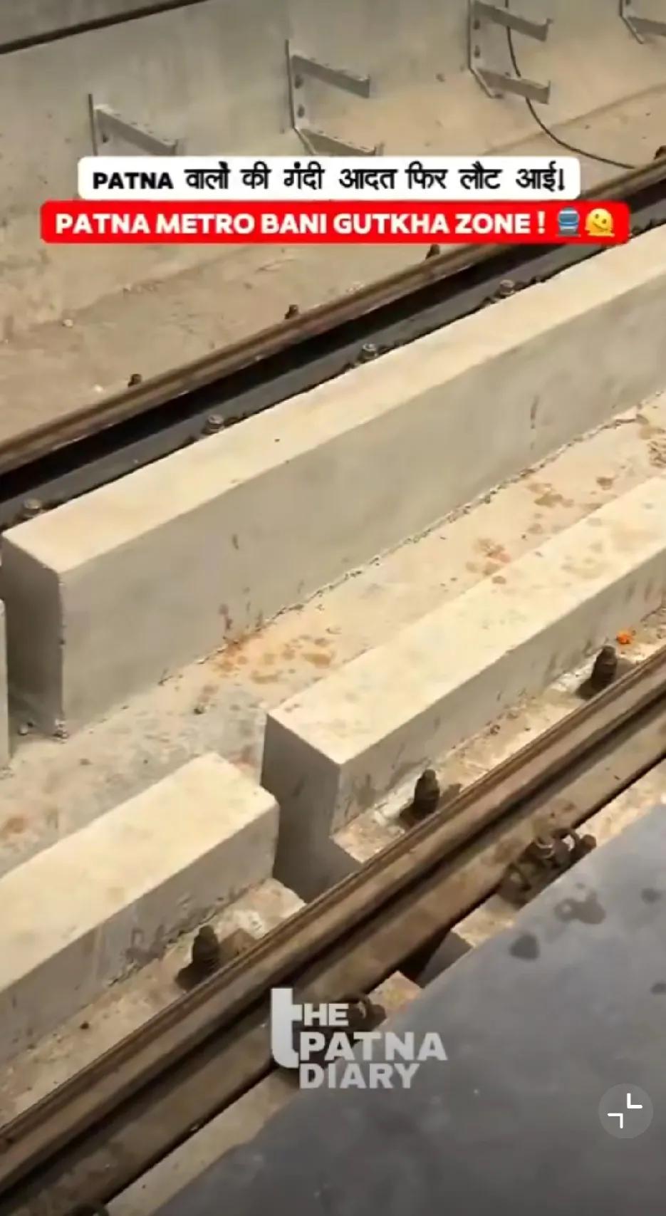 印度媒体曝光刚运营一周的巴特那地铁情况。 地铁站墙面上,楼梯上,地铁轨道水泥地