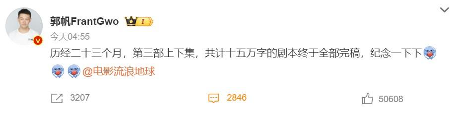 好消息,电影流浪地球第三部上下集的剧本正式完稿了。 坏消息,电影《流浪地球》可能
