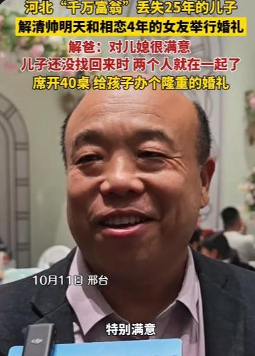 千万富翁婚礼痛哭 背后故事戳中打工人。这场豪门婚礼意外撕开阶层共情:富豪父亲哭的不是钱,是25年寻子的煎熬。网友发现,解清帅被拐前住大别墅,找回后仍选择送外卖自力更生。这届年轻人突然醒悟:比起继承亿万家产,更渴望"被父母看见"的平凡幸福。建议转发给父母:孩子的安全感,从来与财富无关。婚礼泪崩