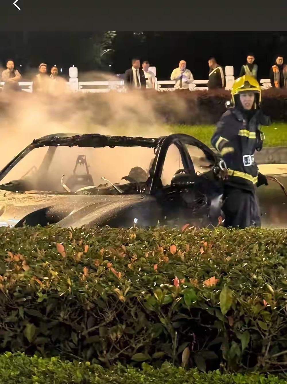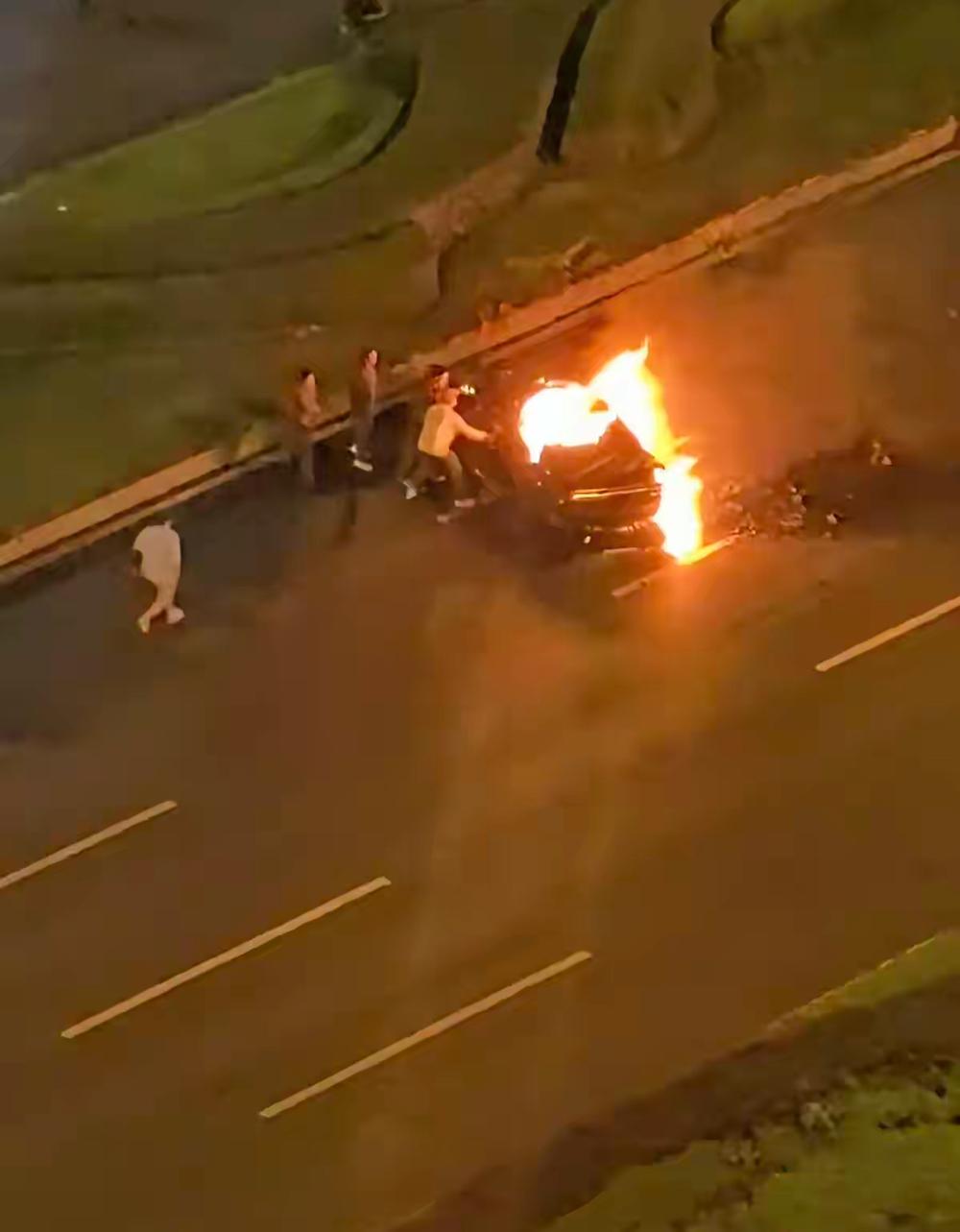 今天凌晨发生在成都天府大道上的一起交通事故,起火的这台电车据说是超速追尾其他车辆