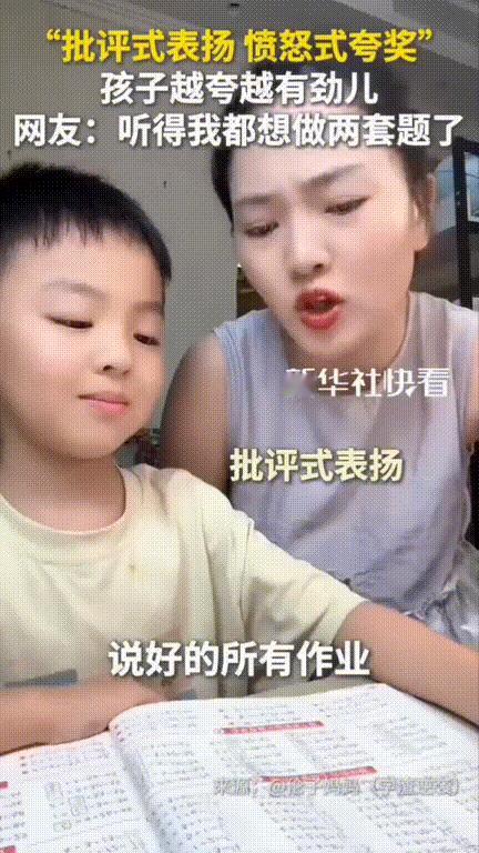 “心里暗爽!”,男孩和家长商量好所有作业在一小时内完成,男孩花费了59分钟才把作业写完,没想到坐在旁边的妈妈竟然大声“批评式”开夸! “说好了所有作业要1个小时完成,你仅用了59分钟就完成了!比原定计划还快了一分钟!漂亮!!” 男孩听着妈妈在一旁的大声夸奖骄傲的眼睛直漂,眉毛直飞。 妈妈还不停的输出:“以前做作业像龟速爬行,现在像小火箭一样,我严重怀疑你给大脑装了加速器。不可思议!真的!” 男孩听后直接将铅笔一甩,撅着嘴傲娇的表示:“妈妈,你快给我打印课外作业,我还要挑战!” 男孩在妈妈激励下越学越停不下来,就连妈妈询问要不要休息,男孩都表示:“不要,我还要挑战。” 有网友评论:小孩子最吃鼓励式教育了,一使劲夸他就干劲十足,批评反而起到反作用。 现在好多家长总焦虑孩子不爱学习,其实有时候换个方式就行。不用跟别人比,就跟孩子自己的昨天比,哪怕只有一点点进步,都认真夸一夸。 这种“正向激励”可比碎碎念的批评管用多了,既保护了孩子的积极性,又让他爱上了努力的感觉,这妈妈的教育方式,值得所有家长学一学!