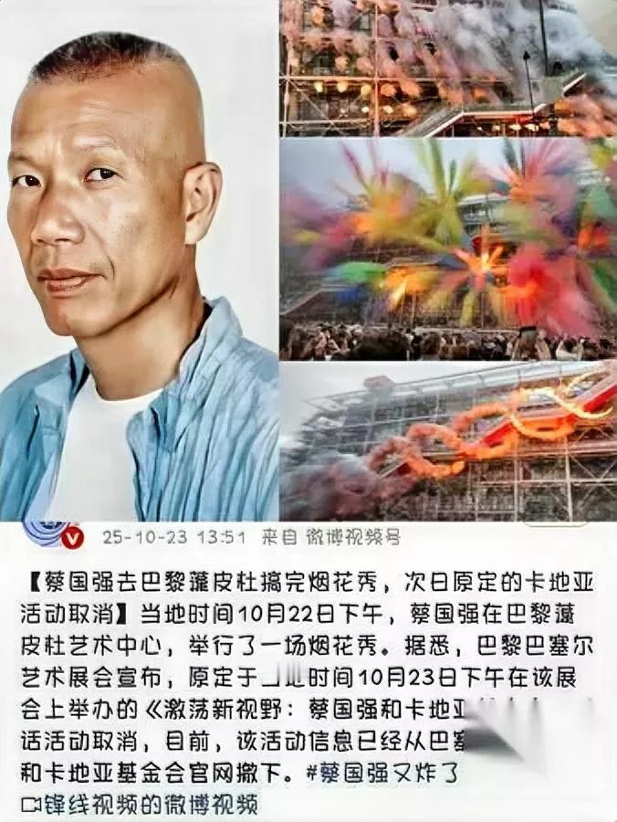 蔡国强的烟花又“炸”出麻烦了——这次在巴黎。 蓬皮杜中心刚放完《最后的狂欢》,次日卡地亚的对话活动直接“蒸发”了:官网没痕迹,没解释,像从没计划过这场对话。 距离西藏日喀则的《升龙》烟花秀才一个月,当时官员因违规批准被免,他的工作室还立了案,9月刚道歉的话,像被巴黎的风刮没了——居民说表演后街道粉尘漫天,焦味飘了整宿,“艺术”成了堵在鼻子里的难受。 西方机构总说“包容”,可这次反应比谁都快:当艺术家的名声从“资产”变“负债”,合作说断就断。 其实事儿的核心从来不是“能不能放烟花”,是艺术能不能“不管代价”地刷存在?从雪山到城市,当爆炸声盖过普通人的抱怨,当粉尘落在居民窗台上,所谓的“探索边界”,不过是把环境和生活当垫脚石。 蓬皮杜的烟花叫《最后的狂欢》,但愿这真的是某种“终结”——不是艺术的终结,是对自然、对普通人生活无度消费的终结。 你们觉得,艺术该为了“炸响”忽略责任吗?评论区聊聊看法~