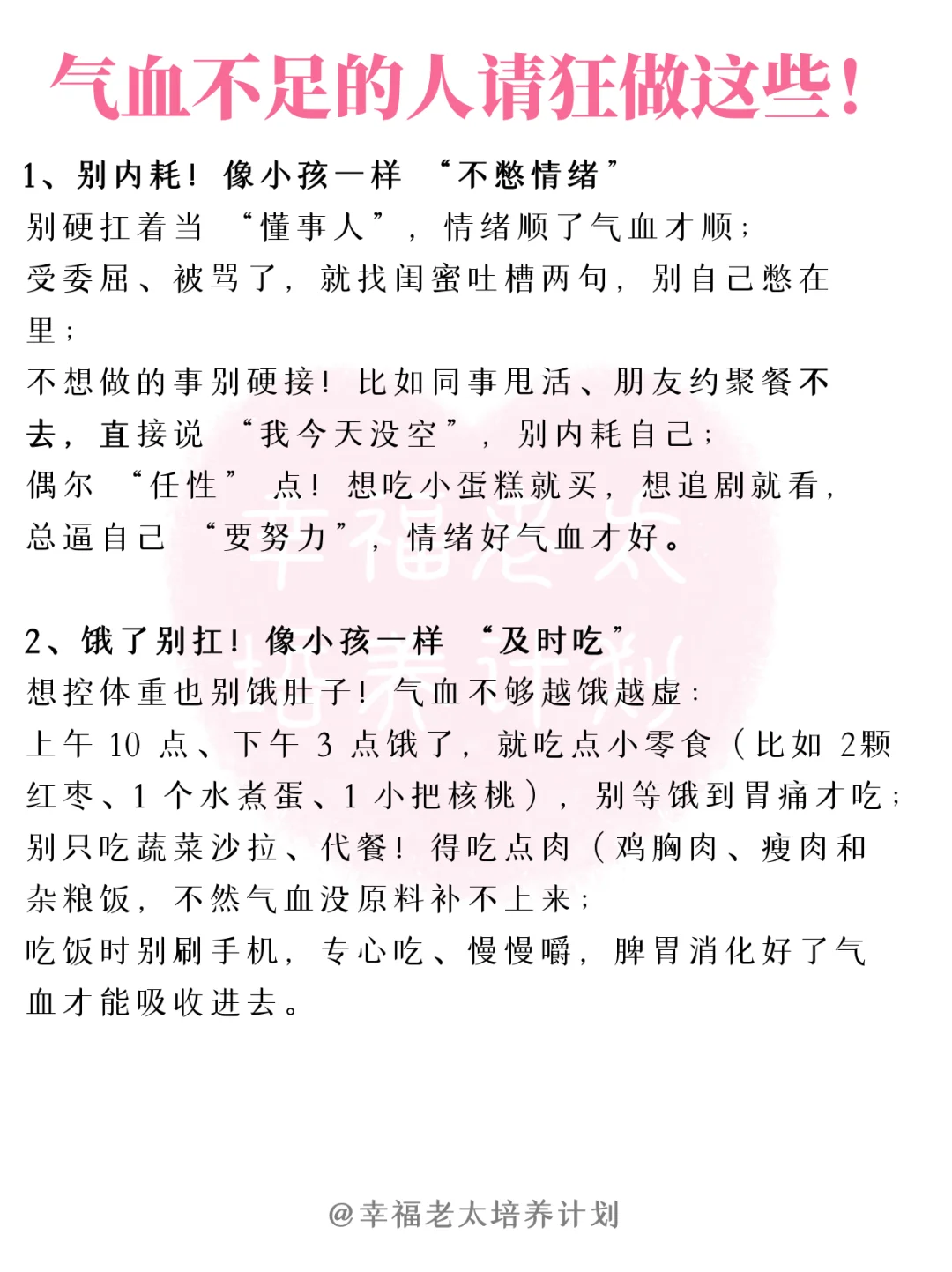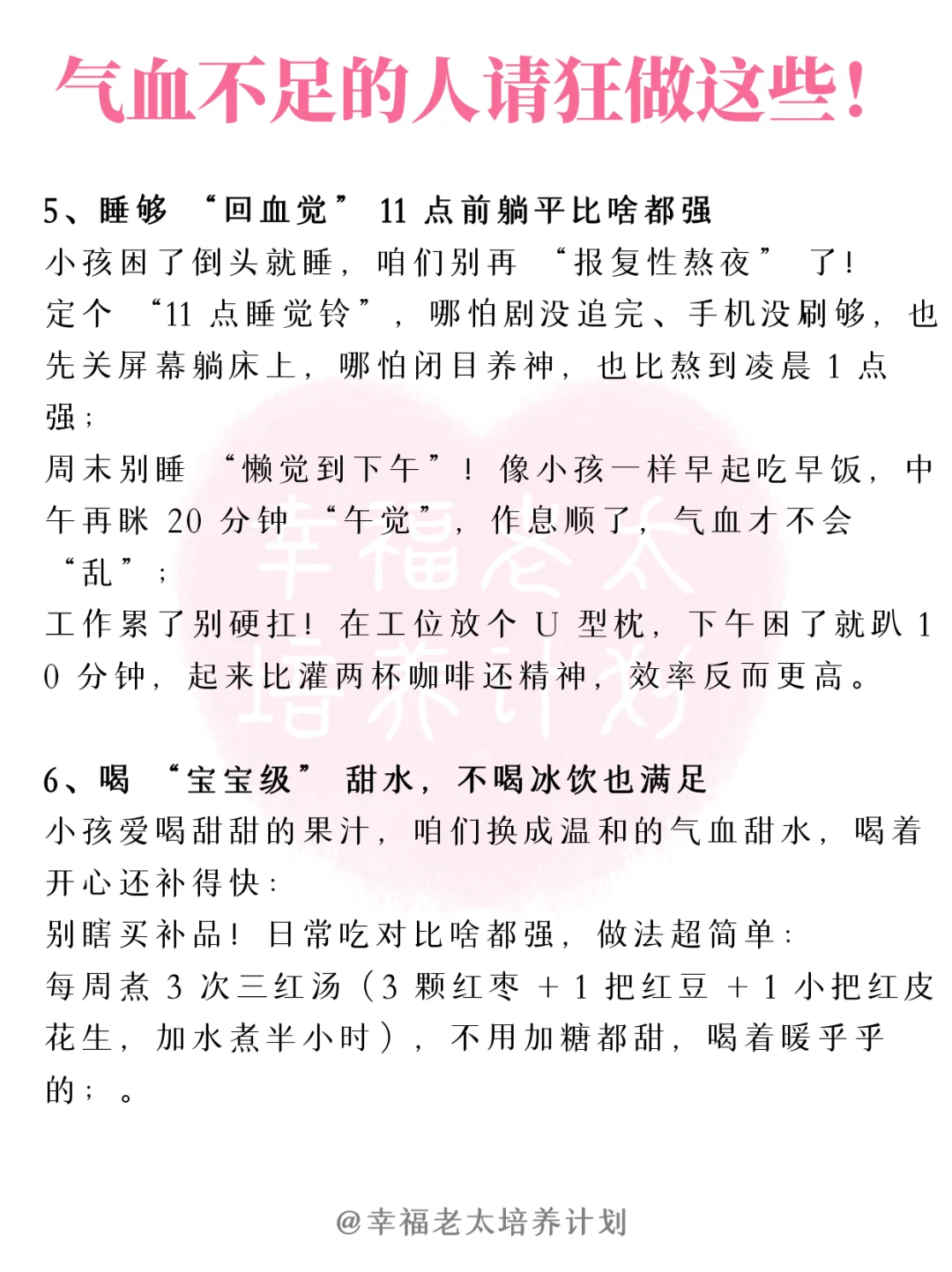 分享几个“当小孩养” 气血法,每步都加了实用知识点,不用花大价钱,日常随手就能做,25 + 的宝子们,别再硬扛啦!把自己当 “小孩” 宠着,气血慢慢就回来了,状态自然越来越棒~