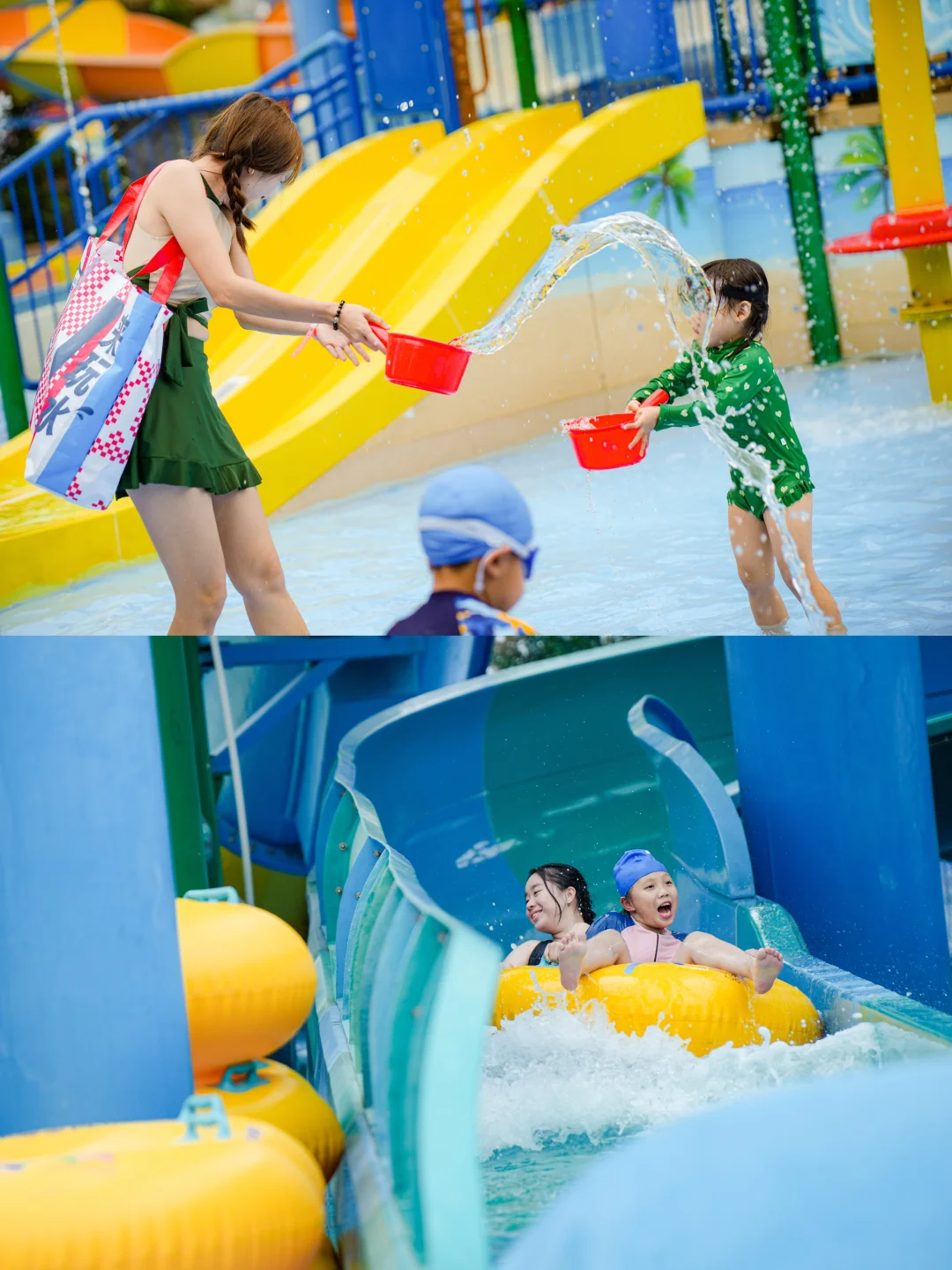 🔹咔吧超级大水寨:全家大小一起玩,里面好多滑道,垂直巨型水桶把水倒下来的时候孩子直呼太过瘾