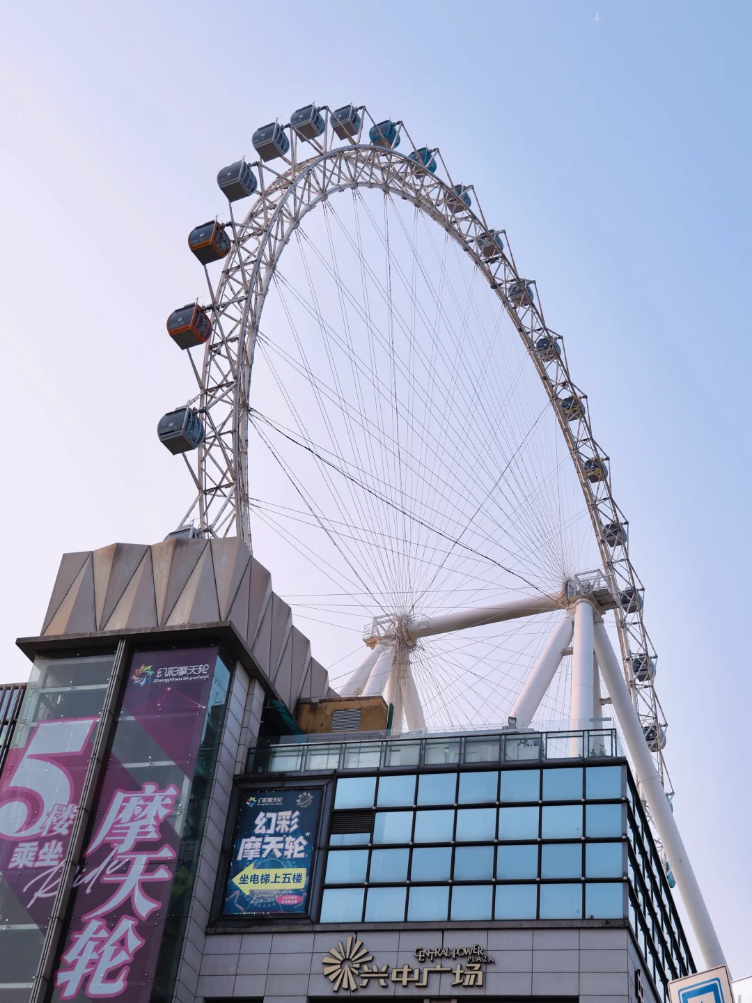 🔹与摩天轮同框:从喜来登旁边的天桥上去,旋转楼梯顶端可以将摩天轮、岐江桥、钟楼三者同框,需要用到100mm以上长焦镜头