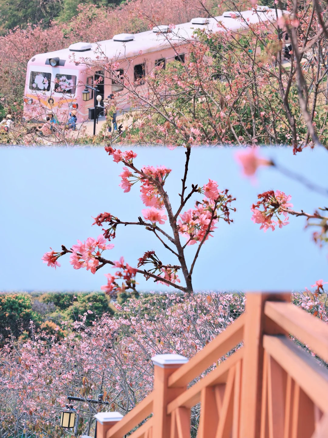 ❸樱之列处人最多,好看的拍列车机位需要爬野坡,注意安全