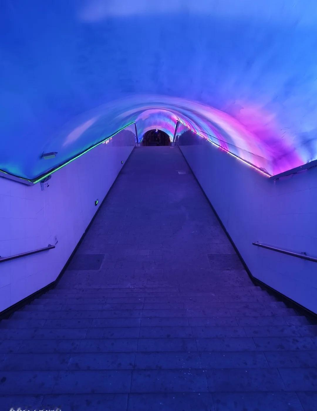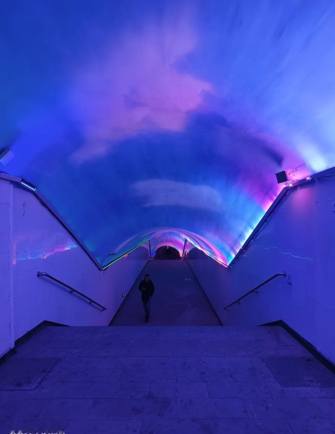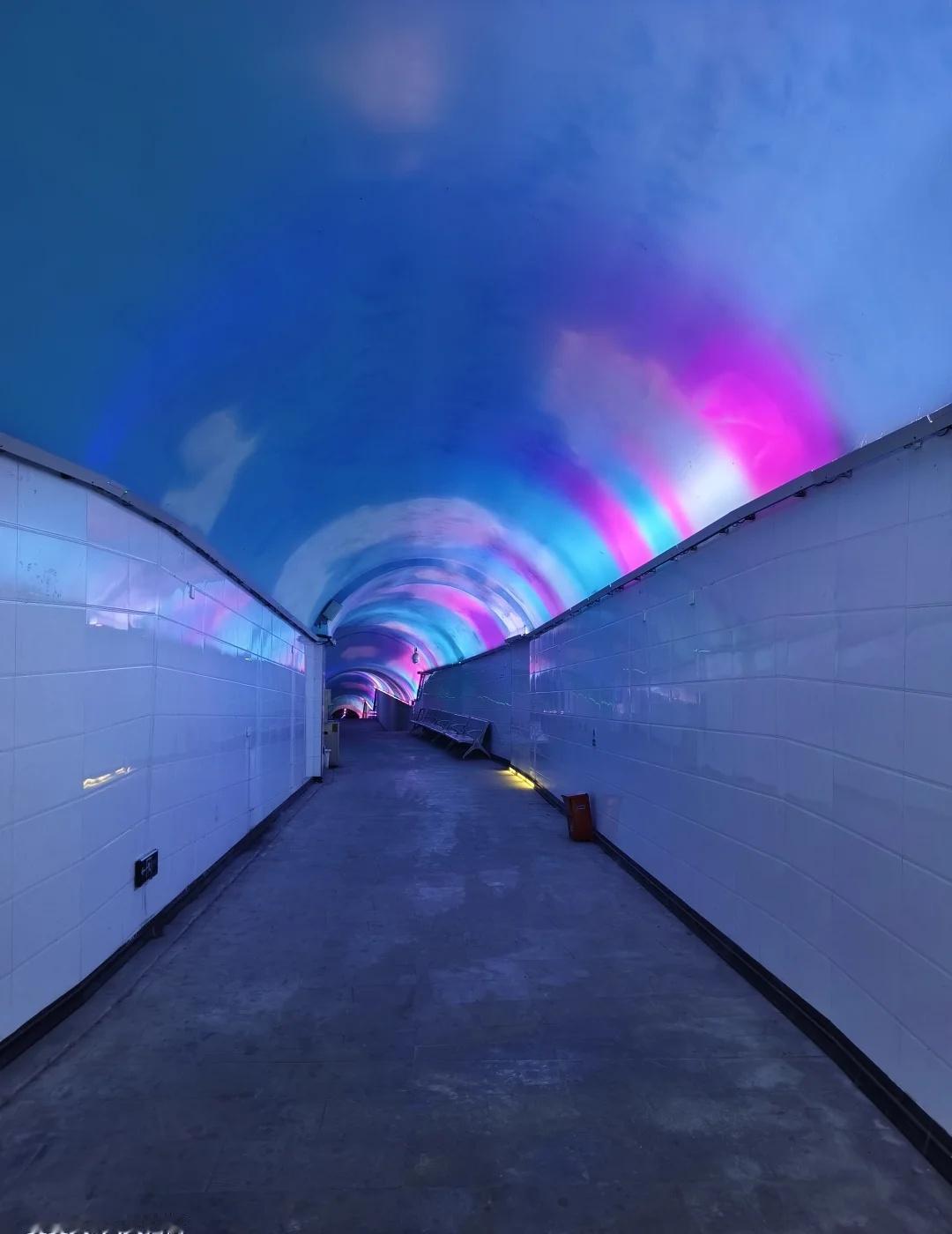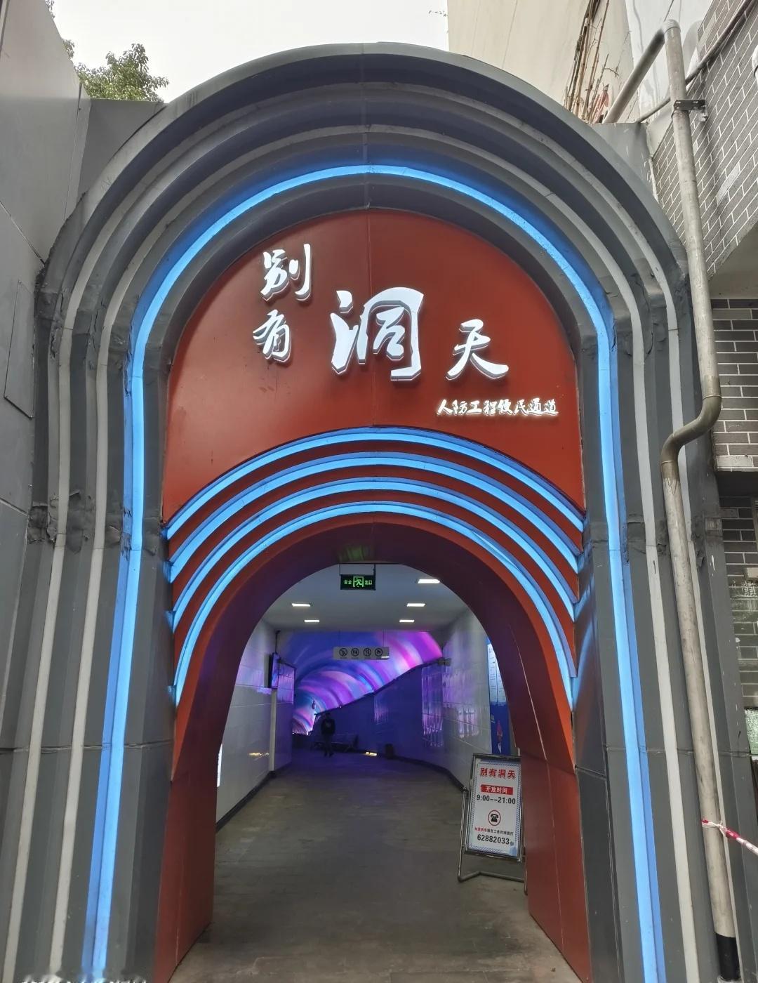 【南岸】防空洞变身梦幻星空隧道直通南滨路 “别有洞天”人防工程便民通道,位于重庆市南岸区海棠溪街道海新街社区,是我市首条直达南滨路的人防便民隧道。全长260米、高5米、宽5米,连接海棠新街公交站至南滨路东原1891,是南岸区现存保存状态良好的防空洞之一。 这个防空洞原本是重柴厂人防工程,经过照明、排水、消防等改造升级,变成一个充满艺术气息的便民隧道。里面贴心地准备了座椅、书籍和风扇,还免费提供老鹰茶,在防空洞里,喝着老鹰茶,看着电视,十分惬意。 防空洞内,山体自然曲折的纹理、蜿蜒的弧线空间,在这个偌大的洞穴里无声地融合于一体,一处简单的防空洞,经过打造之后,处处散发着浓浓的艺术气息。 行走其间,灯光变幻,犹如穿行在一条多姿多彩的梦幻时空隧道,里面的“梦幻星空”顶,超级浪漫。防空洞从上新街直达南滨路“洞见南山”出入口,不但可以纳凉休息,还能节省步行时间,极大地方便了民众出行。 重庆人文扫街 历史遗迹探寻 重庆梦核 穿越时空隧道 重庆避暑胜地 重庆citywalk 城市探索 重庆小众拍照打卡地 重庆旅游推荐 抬头看艺术