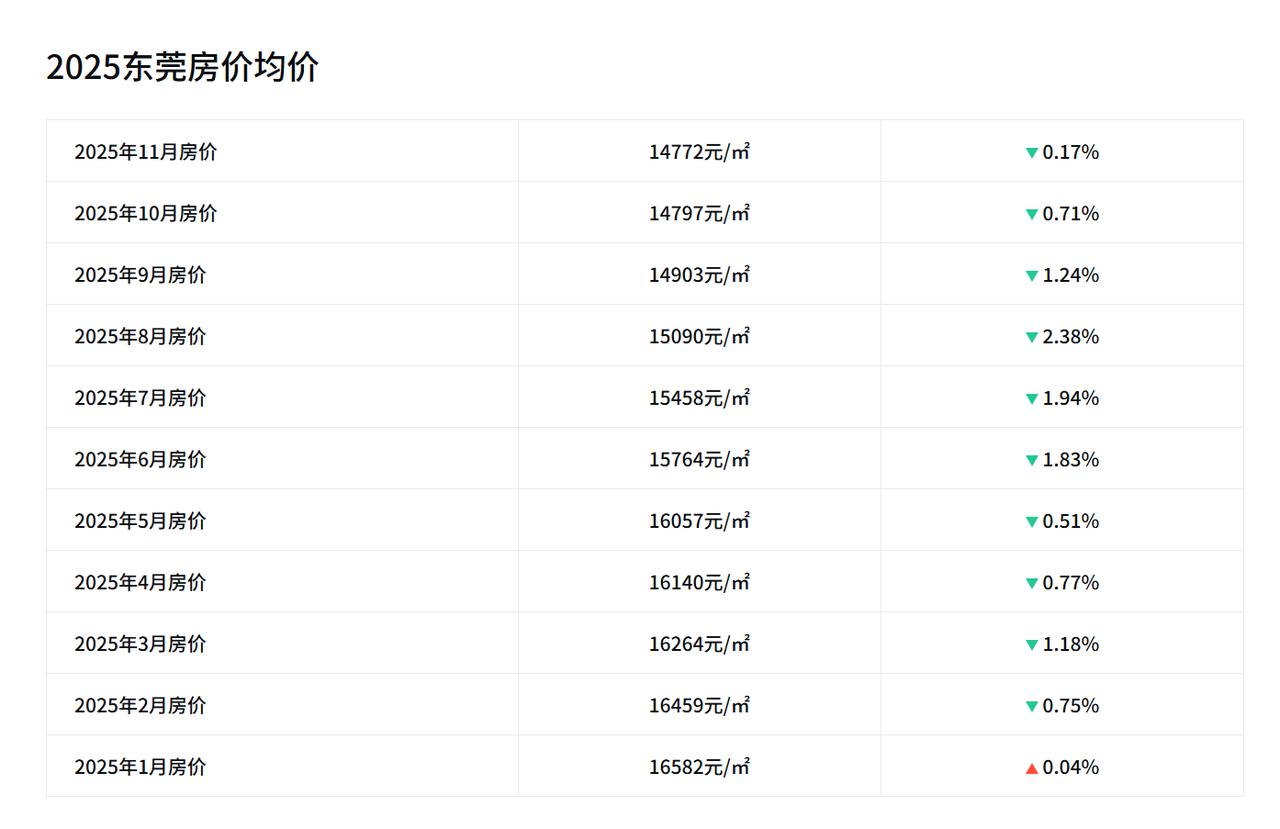 冷热不均! 2015年10月,东莞房价均价8542元; 2016年10月,东莞房价均价11146元; 2017年10月,东莞房价均价13145元; 2018年10月,东莞房价均价15010元; 2019年10月,东莞房价均价15697元; 2020年10月,东莞房价均价17596元; 2021年10月,东莞房价均价20246元; 2022年10月,东莞房价均价22079元; 2023年10月,东莞房价均价21866元; 2024年10月,东莞房价均价17042元; 2025年10月,东莞房价均价14797元。 看到这份东莞十年房价数据,相信很多朋友和我的第一反应一样:房价回到了2018年之前。2015年10月,东莞房价均价还在8542元,之后一路攀升,到2022年10月达到顶峰22079元。2025年10月均价14797元,价格已经回到了七年前水平。这十年间,东莞楼市经历了快速上涨和深度调整。 虽然东莞整体市场面临调整,但东莞各区域楼市表现冷热不均。核心区域如南城、东城,由于配套成熟、资源集聚,房价表现相对坚挺。而部分远郊区区,尤其是过去依赖深圳客源的区域,房价调整幅度较大。 根据2025年9月数据,南城区平均房价依然保持在31586元,环比上涨17.69%; 东城区平均房价28015元,环比上涨9.29%; 凤岗镇平均房价15690元,环比下降0.32%; 东坑镇平均房价13851元,环比下降5.28%; 横沥镇平均房价仅为10574元。 未来,随着新政的实施,东莞楼市可能会在短期内逐步止跌回稳。购房补贴和公积金政策调整,将直接降低购房成本,激活部分刚性和改善性需求。长期看,东莞楼市能否真正回稳,还需要经济基本面、人口流入、居民收入等多方面因素的支撑。