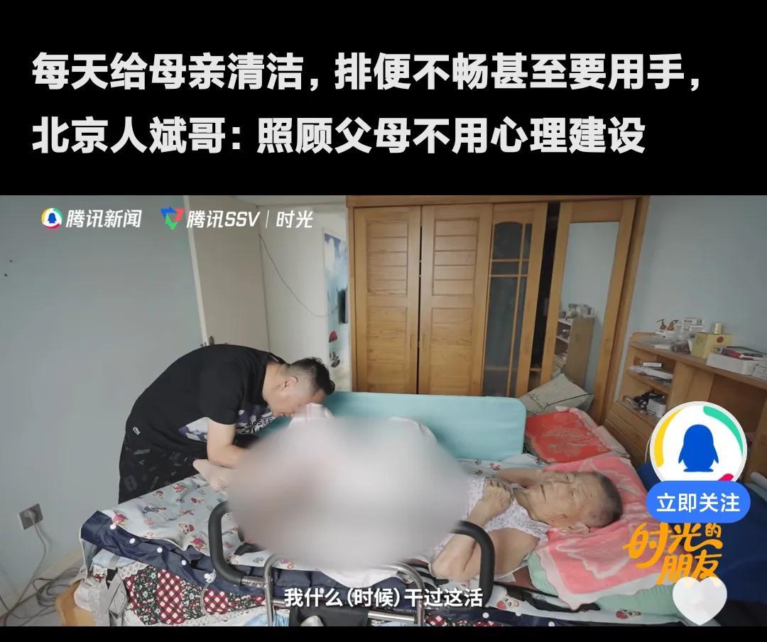 孝顺无需“心理建设”:那是血脉里的本能与担当 北京人斌哥和三个哥哥一起照顾快九十岁的父母。由于母亲长期卧床,斌哥需要定期照顾她排便,还要给她进行清洁,遇到排便不顺利的时候,甚至需要用手去抠。有人问他“你最开始做的时候,心理上会有一些障碍吗?或者怎么说服自己的?”斌哥直截了当地说:“孝敬老人没有什么可说服自己的,再苦再累也得干。说句实话,那是自己亲妈,这种孝心必须要有的!”这质朴的回答,撕开了所谓“尽孝需克服心理障碍”的伪命题,让我们看到,有些担当,本就是刻在血脉里的本能。 记得,90岁的邻居奶奶卧床不能自理,女儿和儿子轮流照顾,儿子接屎接尿从无推诿。奶奶曾愧疚地说:“我也顾不上害羞了,不能只让女儿受累,儿子也得搭把手啊”! 记得,父亲卧床不能自理时,每次大便,一折腾就是大半个小时,一次次用开塞露还是不行,没办法哥就用手抠,“不能眼睁睁地看着老人受罪啊!” 斌哥和无数平凡的子女们,用行动打破了偏见,那些所谓的“尴尬”“不适”,在“让他们少受点罪”的念头面前,早已烟消云散。 这哪需要什么“心理建设”,分明是亲情的本能觉醒。“你养我小,我养你老”,这份反哺,是自然而然的选择,是生命传承里的一环,是“爱”最朴素的双向奔赴。 孝顺父母 为人子女的孝道 子女的孝心 反哺式孝顺 世上最好孝顺