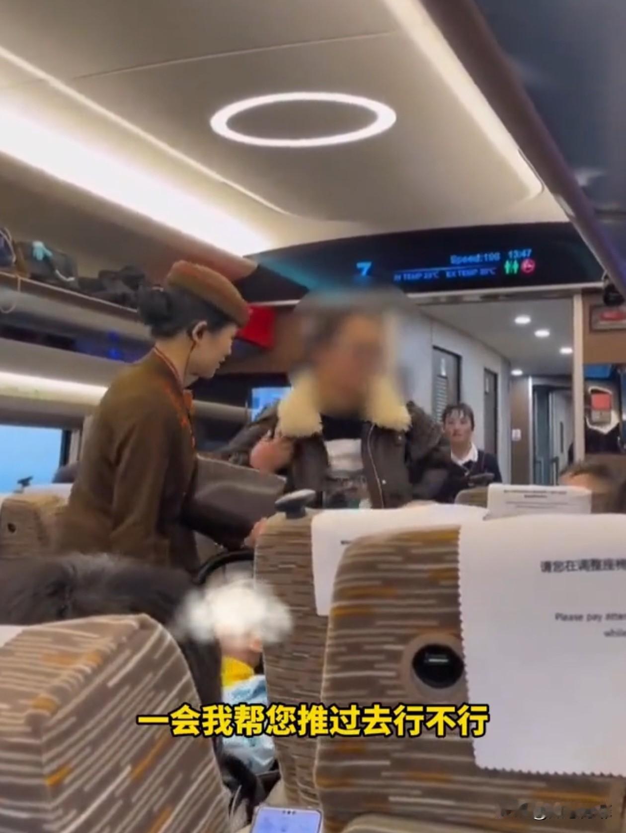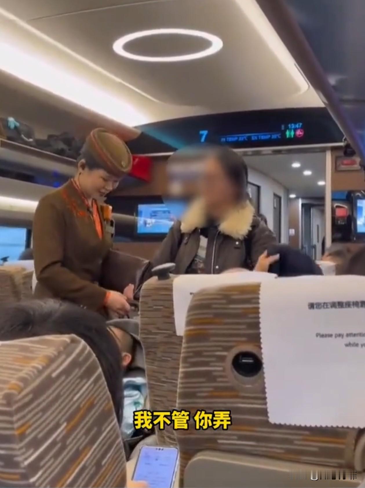 湖北,高铁到站,乘客准备下车,结果一名女子推着婴儿车堵在过道,说要给孩子留休息空间,列车员上前调解,她说你想怎么弄就怎么弄,最后扔下孩子和行李扭头就走。 一个30多岁的宝妈,推着婴儿车直接停在车厢过道正中间,刚好堵着下车口。等列车到站,后面一群旅客排队要下车,她却纹丝不动,理由是孩子要休息。 但有网友拍的视频里,孩子明明睁着眼睛坐在车里,根本没睡着。 旁边旅客劝了几句,她完全不听,后来两名列车员过来耐心调解,表示就往后挪一点,让大家先下车就行。 结果她反而生气了,对着列车员反复喊,我弄不了,你弄吧,想怎么弄就怎么弄。 之后就直接把背包扔在地上,不管婴儿车和车里的孩子,自己气冲冲地跑到另一节车厢去了。 最后没办法,列车员只能一前一后把婴儿车推到宽敞处,堵在后面的旅客才总算顺利下车。 推婴儿车出门确实不容易,但完全有更好的办法,可以提前找列车员换个宽敞的位置,犯不着堵着通道,更不该扔下孩子还发脾气,对孩子影响也不好。