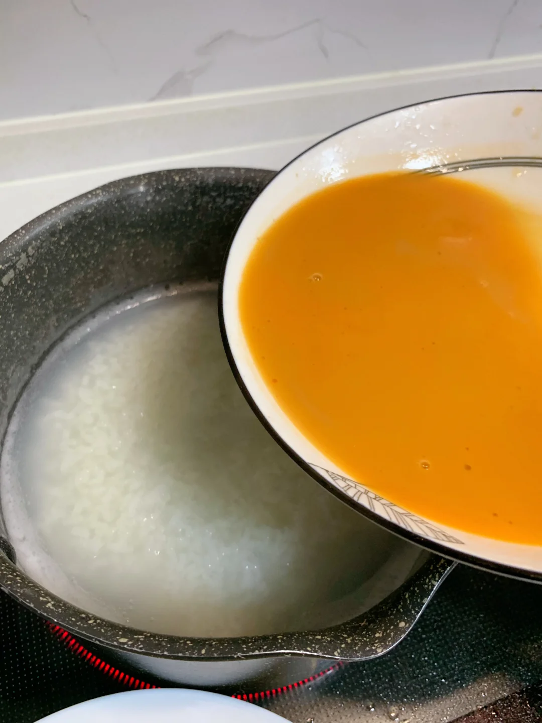 2️⃣大米洗净 水开后留缝儿 避免扑出来 水开20分钟差不多 注意观察 中途记得搅拌