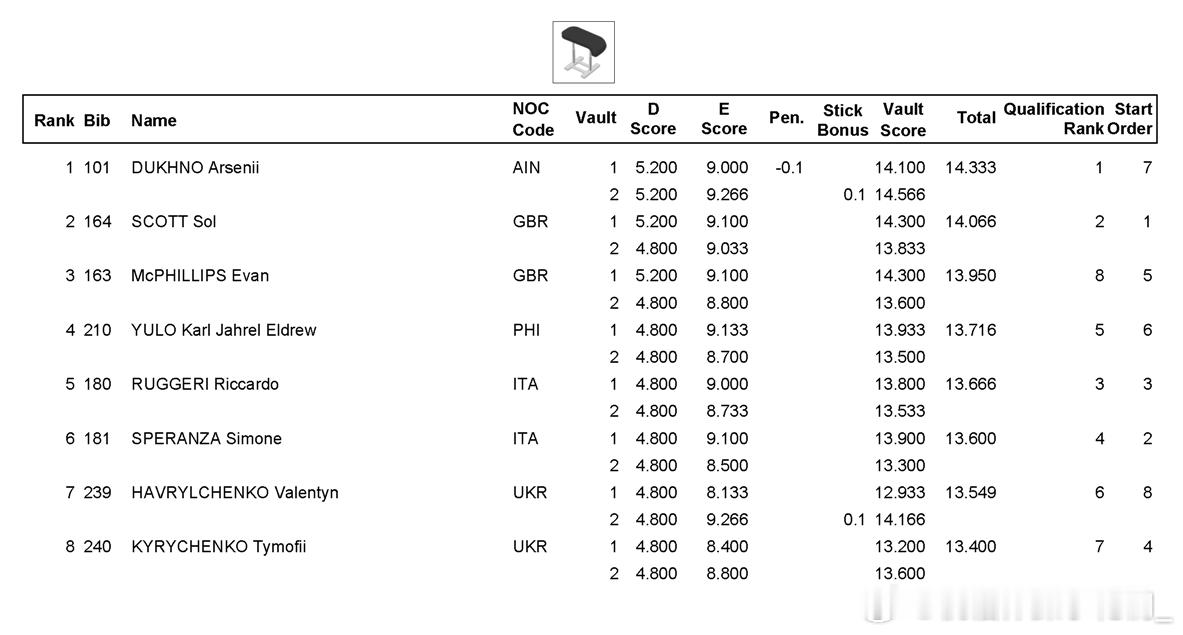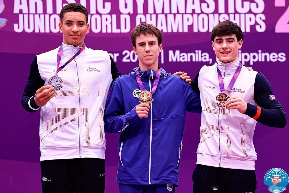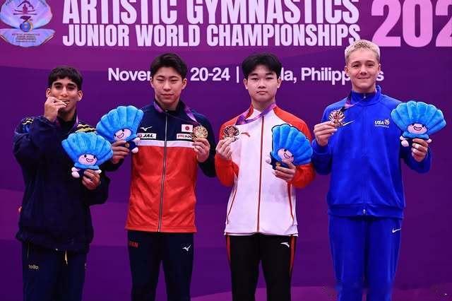 世青赛收官之日,中国队再添一金一铜。平衡木决赛中,预赛排名第九因日本选手队内淘汰才得以晋级决赛的向伊娜发挥出色,以5.9+8.233分为中国队再得一金;日本选手南埜佑芽获得银牌(5.5+8.3);美国选手Caroline Moreau第三(5.7+7.9);以预赛第一晋级的黄紫艺扶木+下法失败,仅列第五(6.0+6.933)。男子双杠赛场,杨兰斌再次发挥出色,虽然D分全场最低,但E分遥遥领先,再获一枚铜牌(4.4+9.2),美国选手Danila Leykin并列铜牌(5.2+8.4);哥伦比亚选手Camilo Vera与日本选手小島埜和同分并列获得金牌(5.3+8.566,5.2+8.666);另一位中国选手郑奥获得第五名(4.5+8.833)。女子自由操金牌被日本选手西山実沙获得(5.3+8.233);法国选手Elena Colas和Maiana Prat分列二三名(5.6+7.9-0.3,5.3+7.866)。男子跳马金牌被以中立身份参赛的俄罗斯选手Arsenii Dukhno获得(5.2+9.0-0.1/5.2+9.266+0.1),哥伦比亚选手Camilo Vera继双杠后单杠再次摘金(5.6+8.833+0.1)。至此,本届世青赛的比赛宣布结束,中国队以四金三铜排在本届世青赛金牌榜首位。杨兰斌也以两金两铜排在本届世青赛个人奖牌榜的首位,郑奥与Arsenii Dukhno和Camilo Vera并列第二(两金)。而赛前被寄予厚望的法国选手Elena Colas在团体夺冠后,个人赛失误较多,仅获得全能和自由操两银。