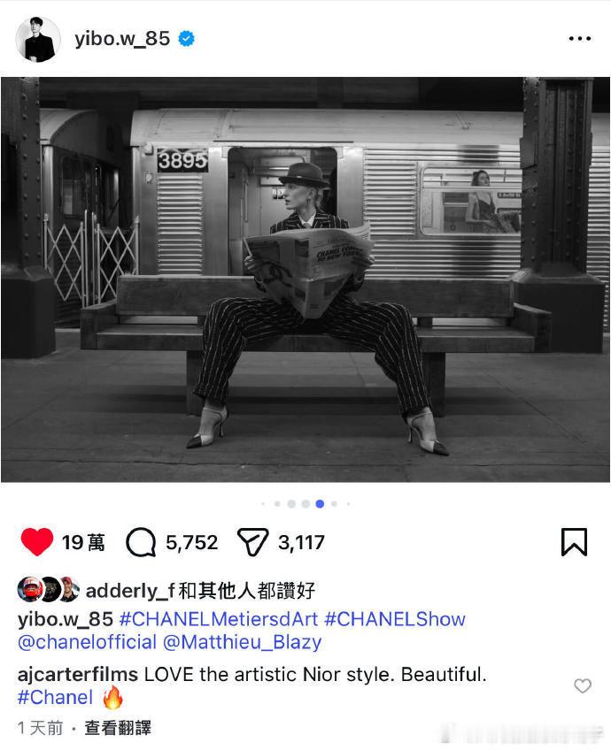 模特公司用了王一博拍的模特照模特公司官方用王一博摄影作品香奈儿超模的美国经纪公司,特意引用王一博 INS 上的摄影作品!大秀专业阵容中被选中,摄影实力获国际认可。
