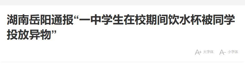 中新网:湖南岳阳通报“一中学生在校期间饮水杯被同学投放异物”