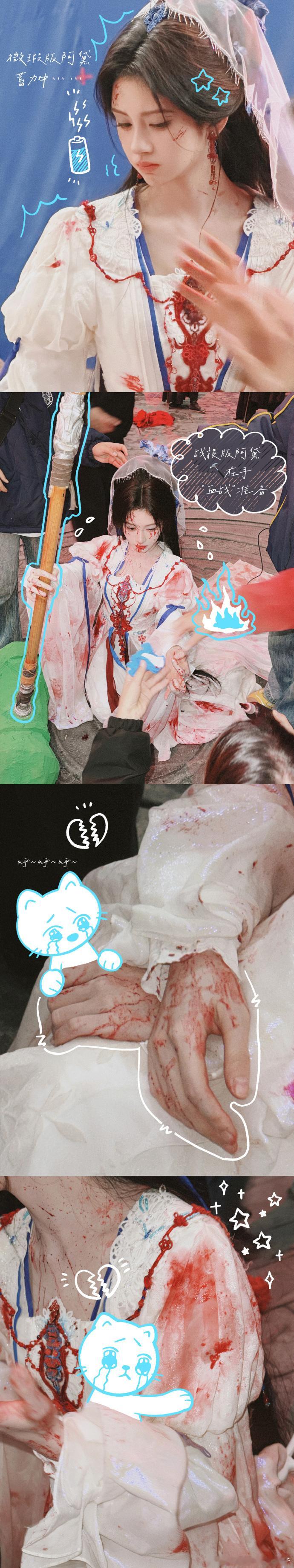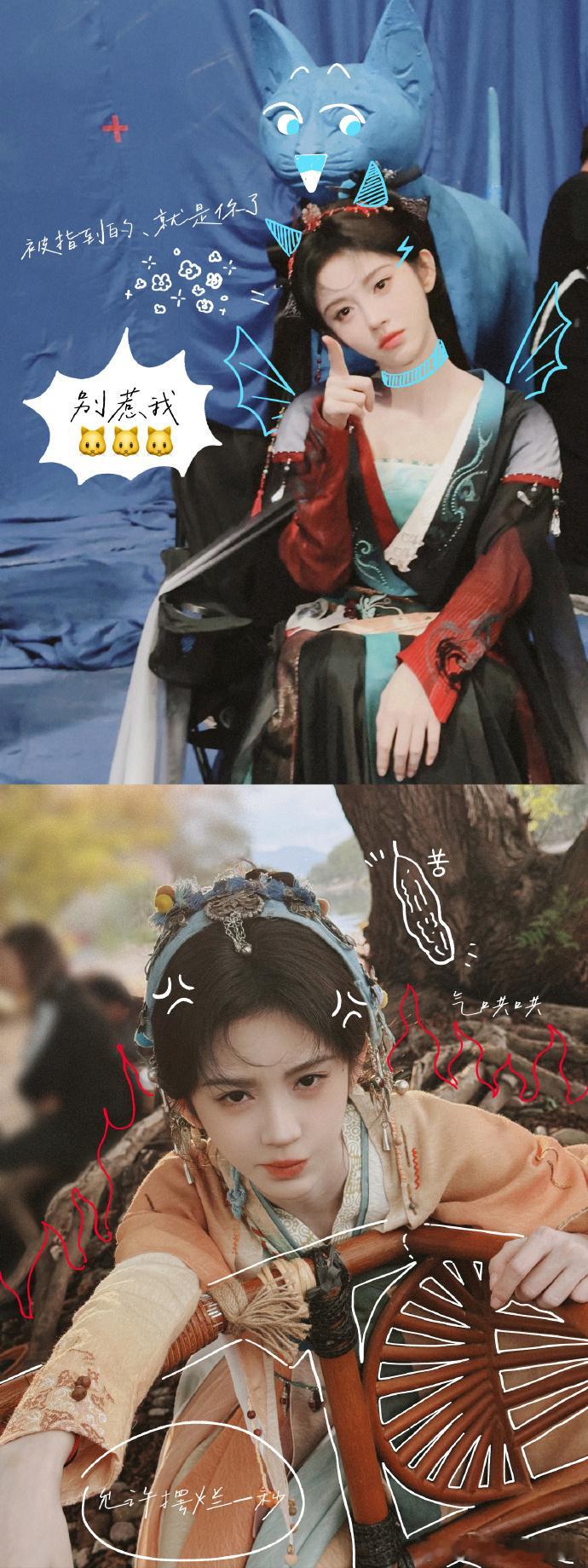 鞠婧祎阿黛片场手绘照鞠婧祎捕获一只野生杀青黛鞠婧祎解锁阿黛修炼日记!野生杀青黛的