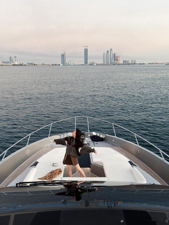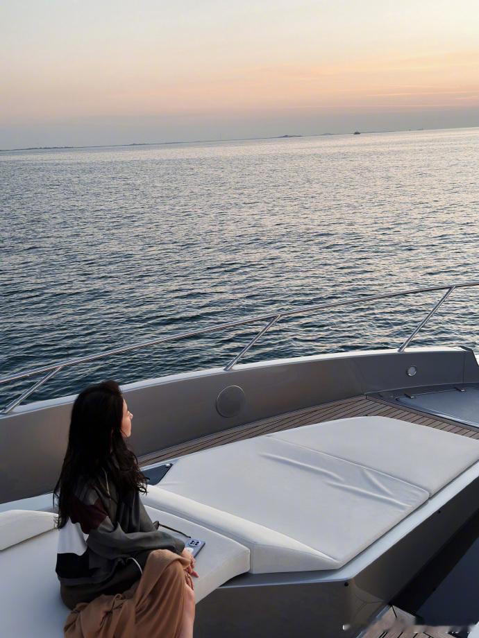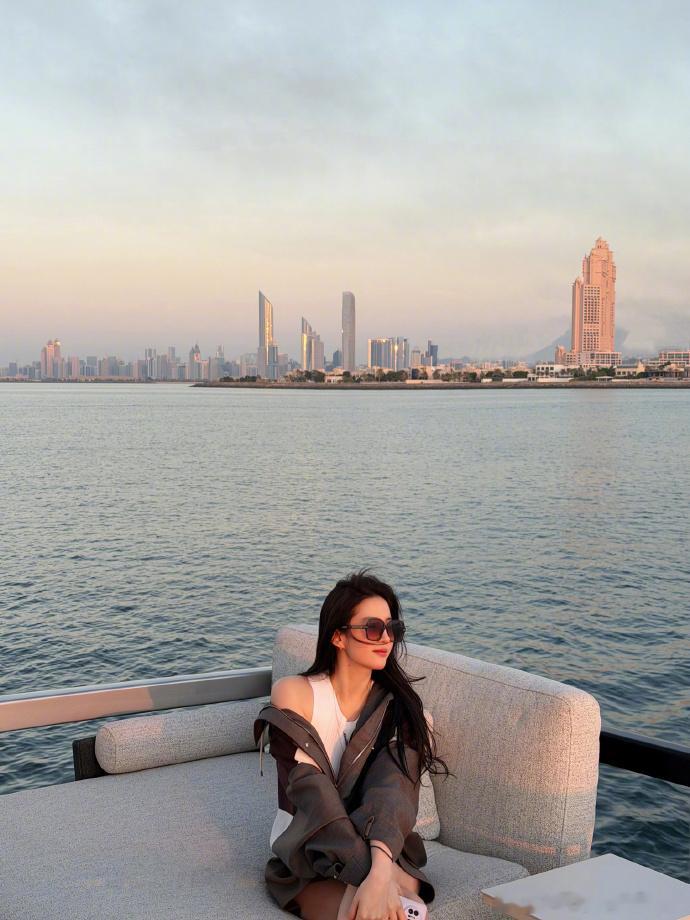 刘亦菲随便一拍就出片了刘亦菲自拍直出 刘亦菲阿布扎比看海直出!美人与落日海岸线相融,画面如油画般浪漫。