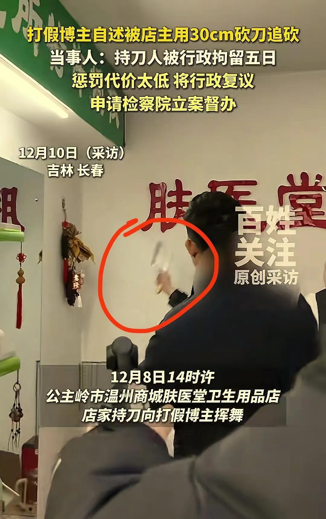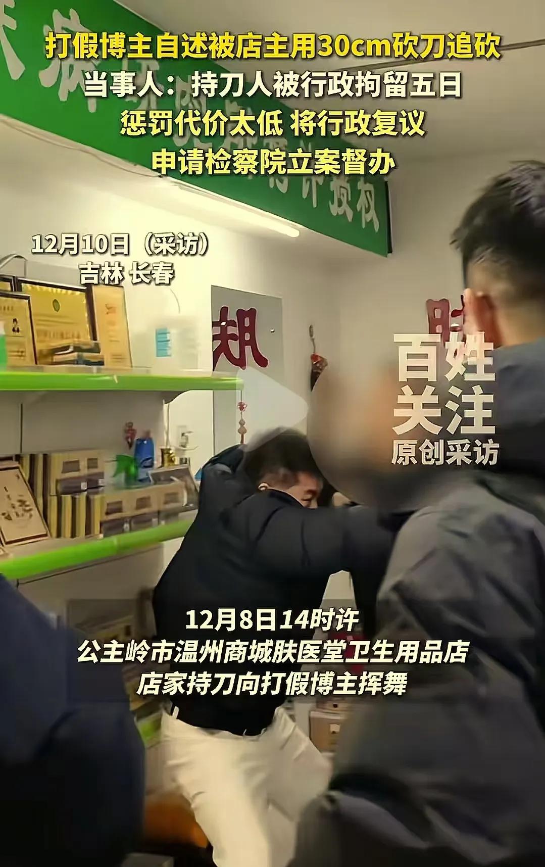 长春icon打假惊魂!打假博主去卫生用品店进行打假,被店主用30cm砍刀追砍!警方:行政拘留5日;博主:“拿到砍我就是要我性命,这处罚太轻了,将申请行政复议icon!”网友:拿刀砍人,什么时候惩罚这么轻了?