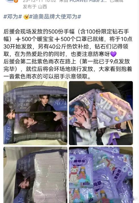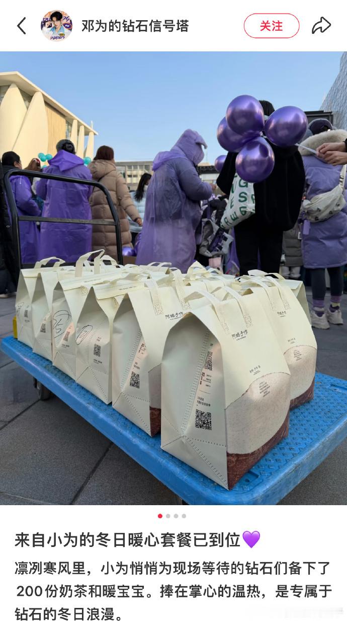 邓为逆应援热饮暖宝宝邓为给粉丝逆应援热饮暖宝宝寒风里的小温暖!热饮与暖宝宝的逆应援,让冬日线下应援既有热情也有贴心守护。