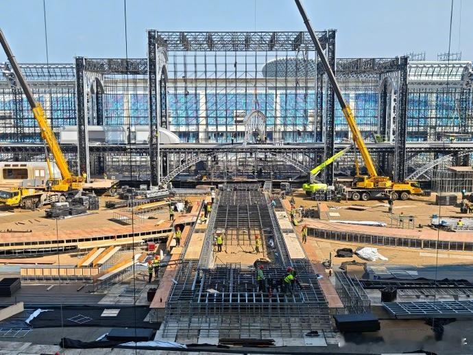 湖南卫视跨年舞台布局湖南跨年舞台置景高铁主题舞台超震撼!1:1 实体模型 + 360° 四面台,AR 技术加持,跨年狂欢感直接拉满。
